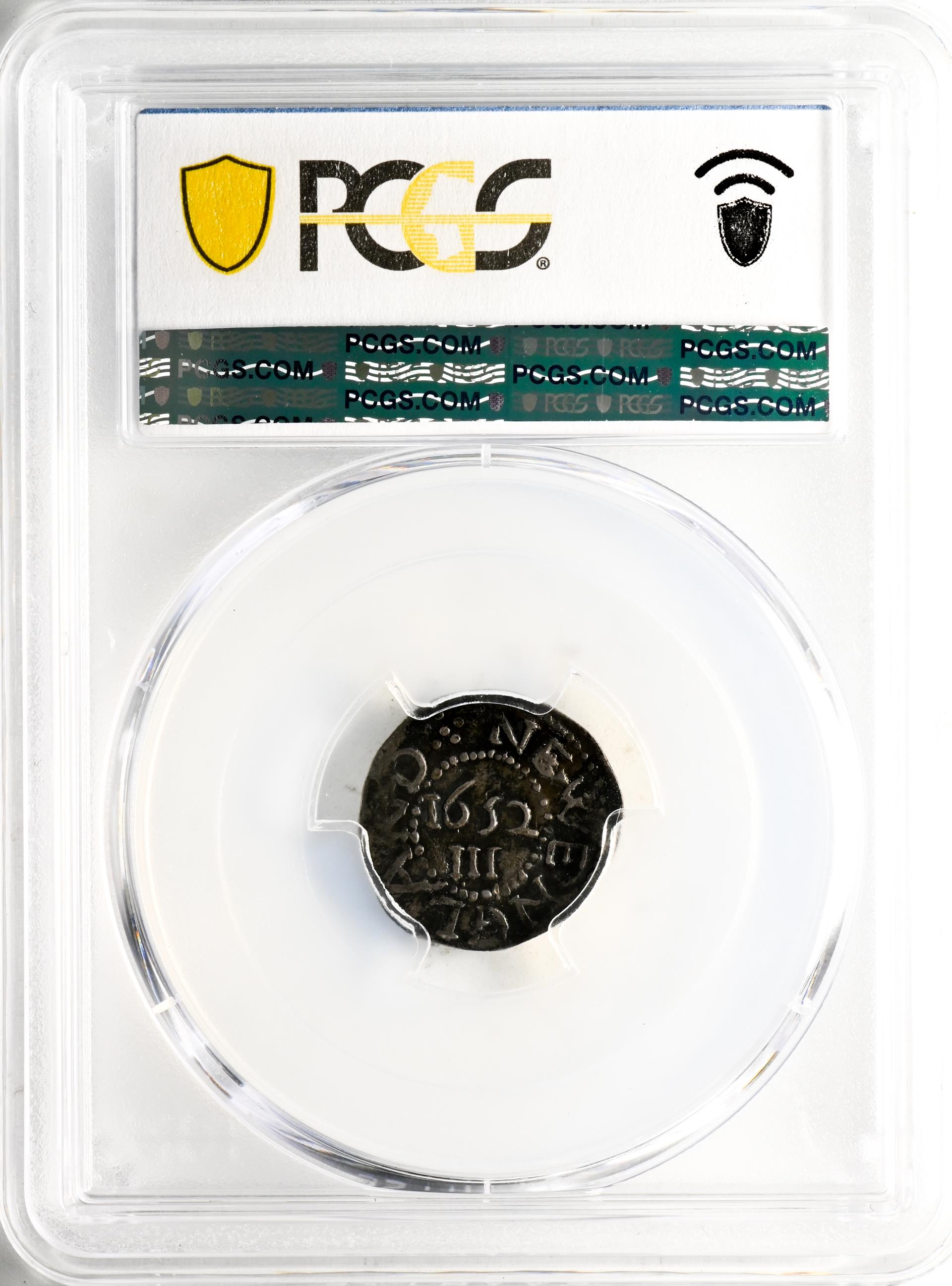 1652 OAK TREE 3 PENCE, NO IN ON OBVERSE AU50