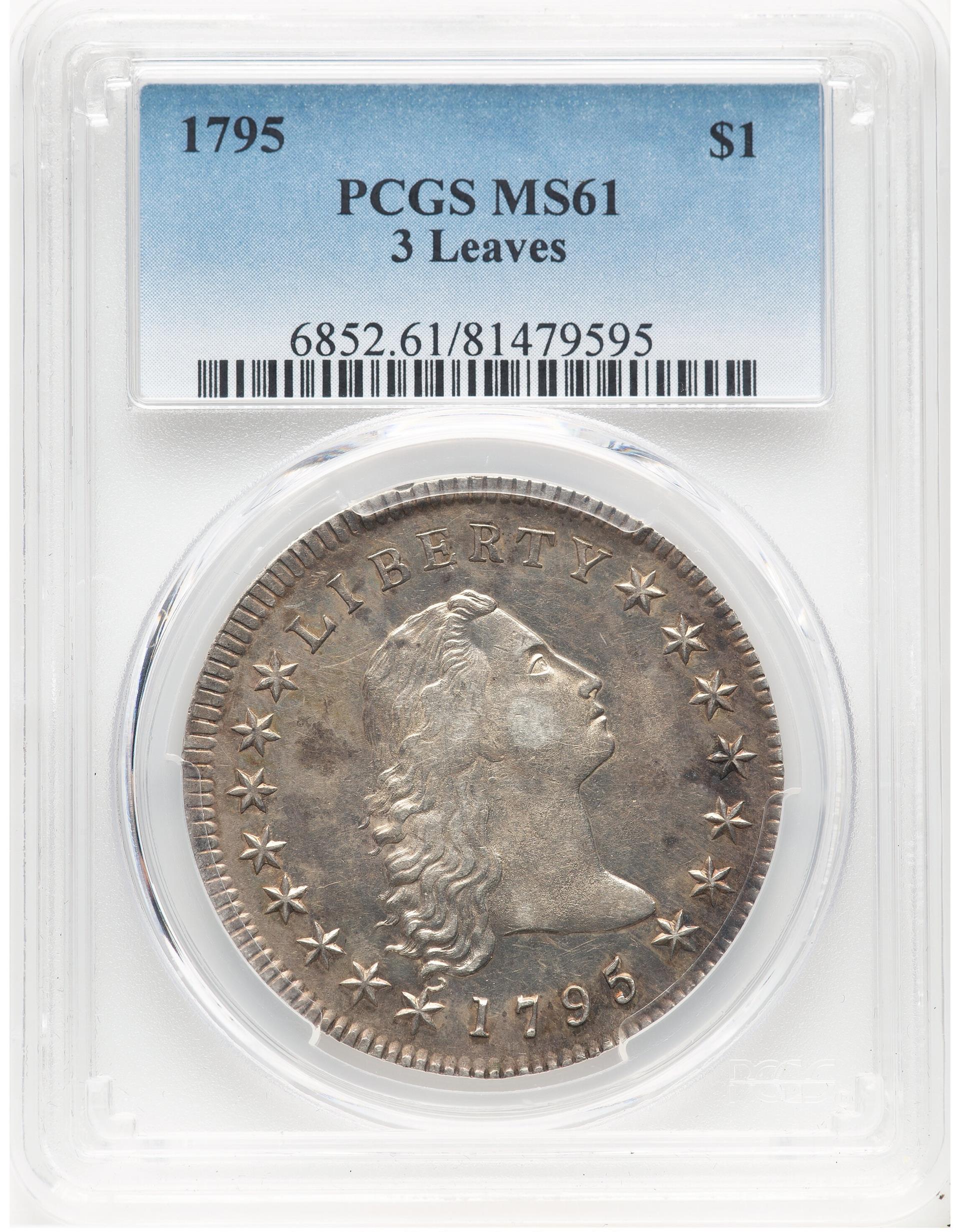 Despite its brevity, the Flowing Hair dollar series is widely collected by type (most collectors selecting the 1795 issue, because it is so much more plentiful than 1794). Some of the 1795 dollars have two leaves below each wing of the eagle, while others have three. Both kinds are equally available, however. There are no records of proofs for either year, but some 1795 dollars are purported to be “specimen” strikes. Mint state pieces of both dates are very rare. Points to first show wear are the cheek, shoulder and hair above Liberty’s forehead and the eagle’s breast, head and wing-tops.