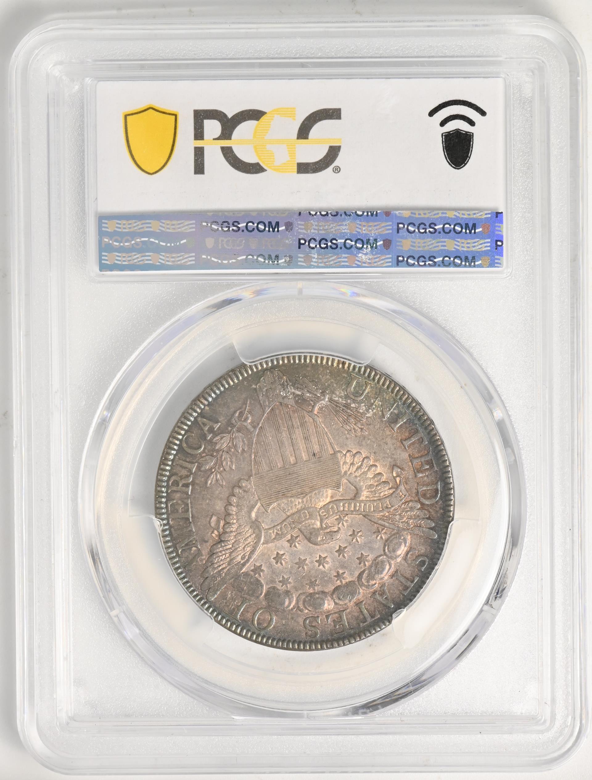Despite their relatively high mintages, few Draped Bust/Heraldic Eagle half dollars were preserved in pristine mint condition. There just weren’t many collectors around in those early days. In any event, fifty cents was a lot of money to set aside, representing a day’s pay for many working class Americans. Large numbers of these coins survive in the higher circulated grades, because banks routinely held them for use in inter-institutional transactions.