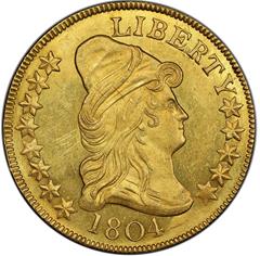 As on most early coins, varieties abound in this series, including differences in placement of the reverse stars and multiple combinations of obverse and reverse dies. Rarely assembled by variety, and only slightly more often by date, this series experiences strong demand from type collectors. Although Mint State examples exist of all dates, Heraldic Reverse eagles are usually found in the higher circulated grades.