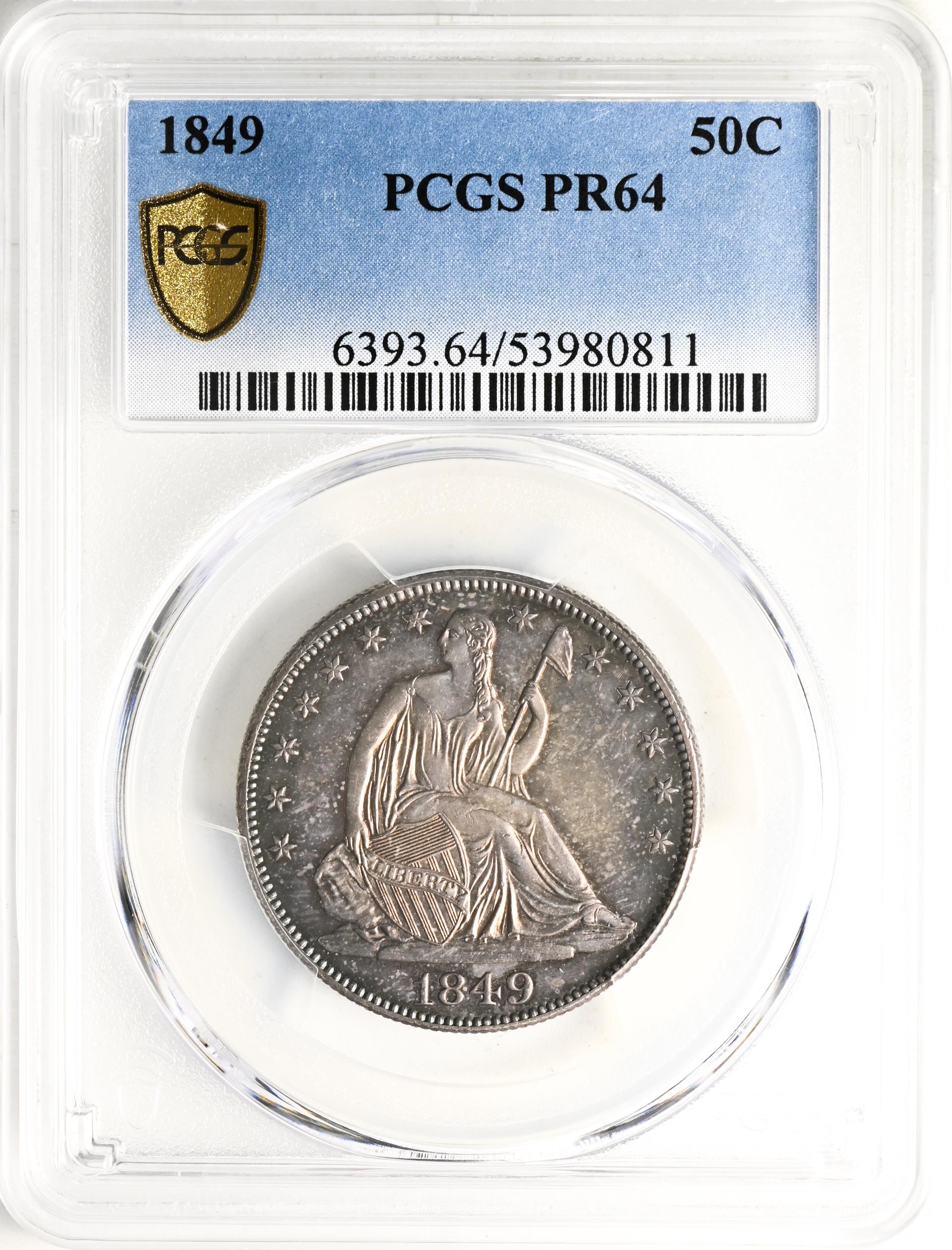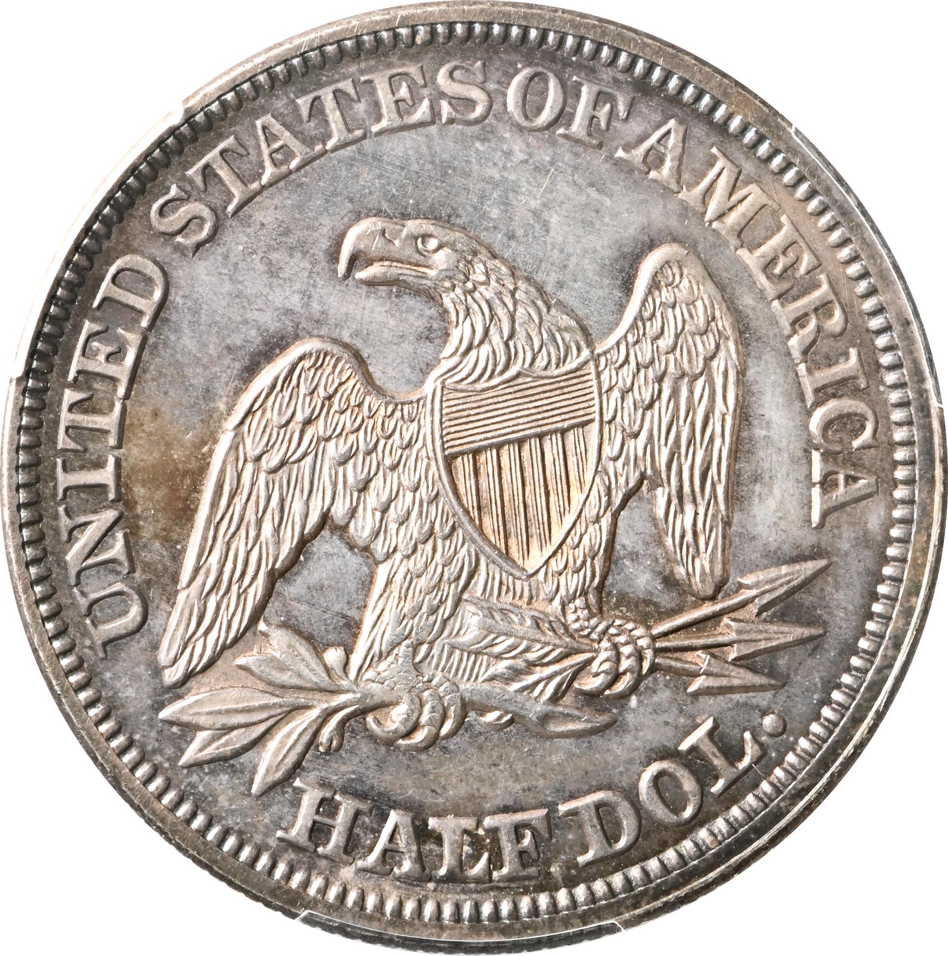 Although high-end, mint state Arrows coins exist in large enough quantities to satisfy collector demand, the same cannot be said for proofs. Unfortunately, 19th century collectors did not regard these coins with the same respect shown by their successors, and handling marks and hairlines are the rule rather than the exception for proofs of this type. When grading this design, or any Seated Liberty half, wear will first show on Liberty’s head, breast and knees. On the reverse, check the eagle’s head, neck and wing-tops.