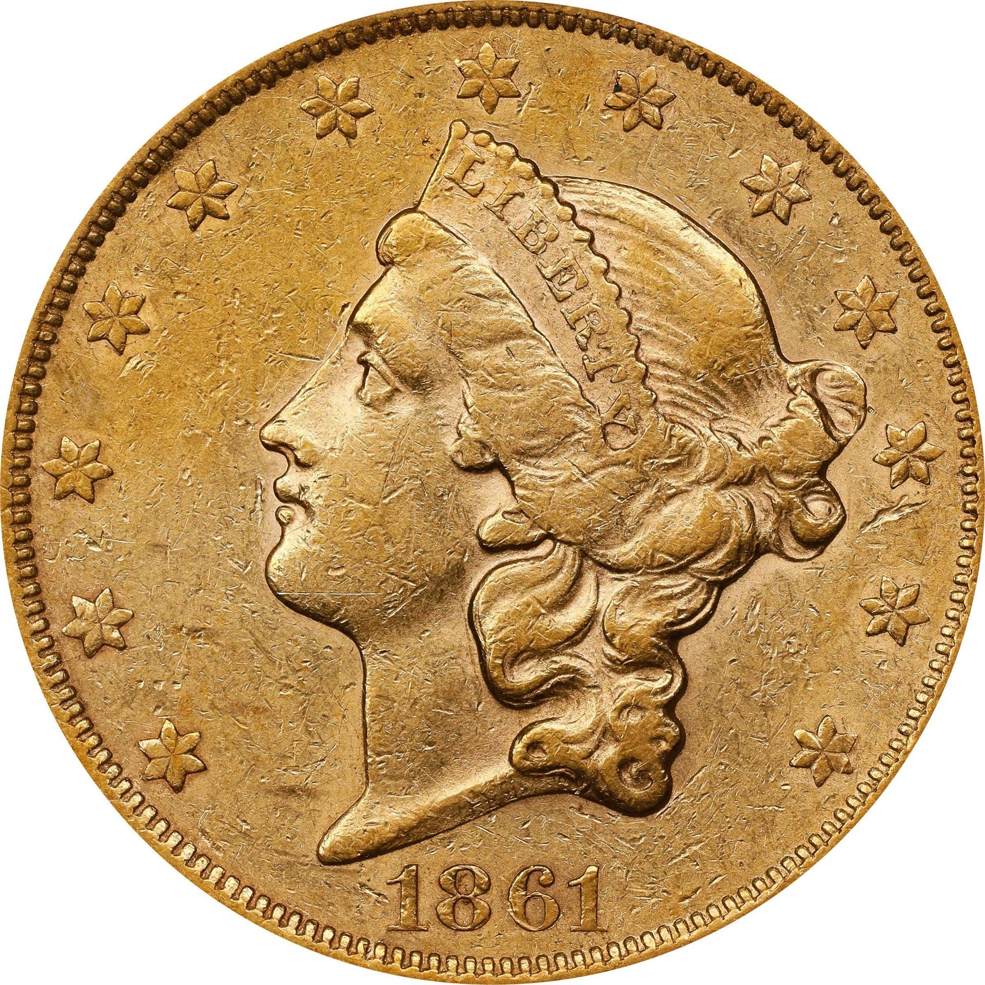 1861-S LIBERTY HEAD $20, PAQUET AU53