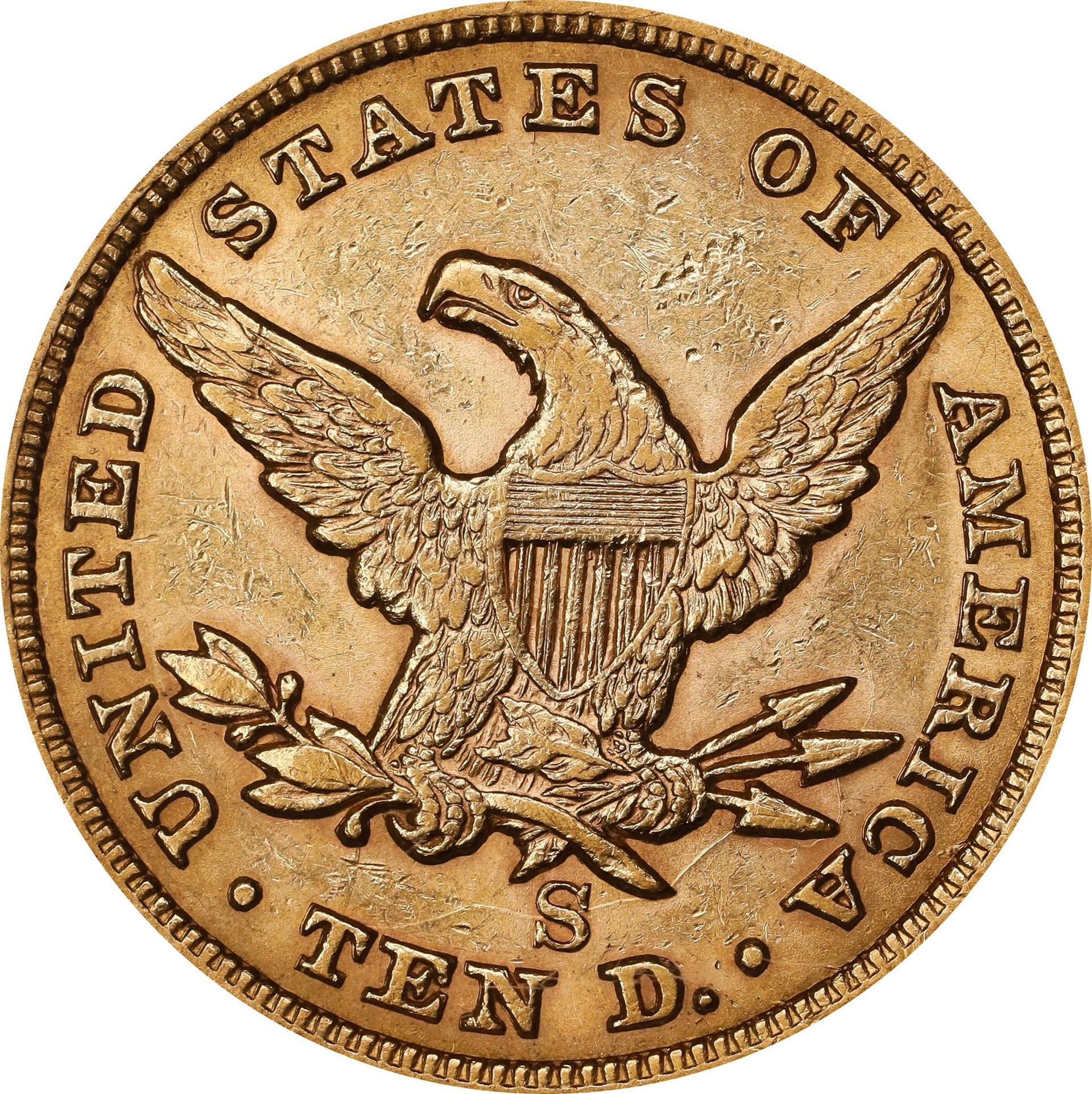 Collectors were slow to seek out Coronet eagles by date and mint. While proofs were purchased regularly by a handful of numismatists from 1858 onward, most of the branch mint pieces, as well as non-proofs from the Philadelphia Mint, were placed into general circulation. There they became worn, and many were later melted. Perhaps the only complete series of these pieces was that assembled by Louis Eliasberg, Sr. and sold at auction in 1982.