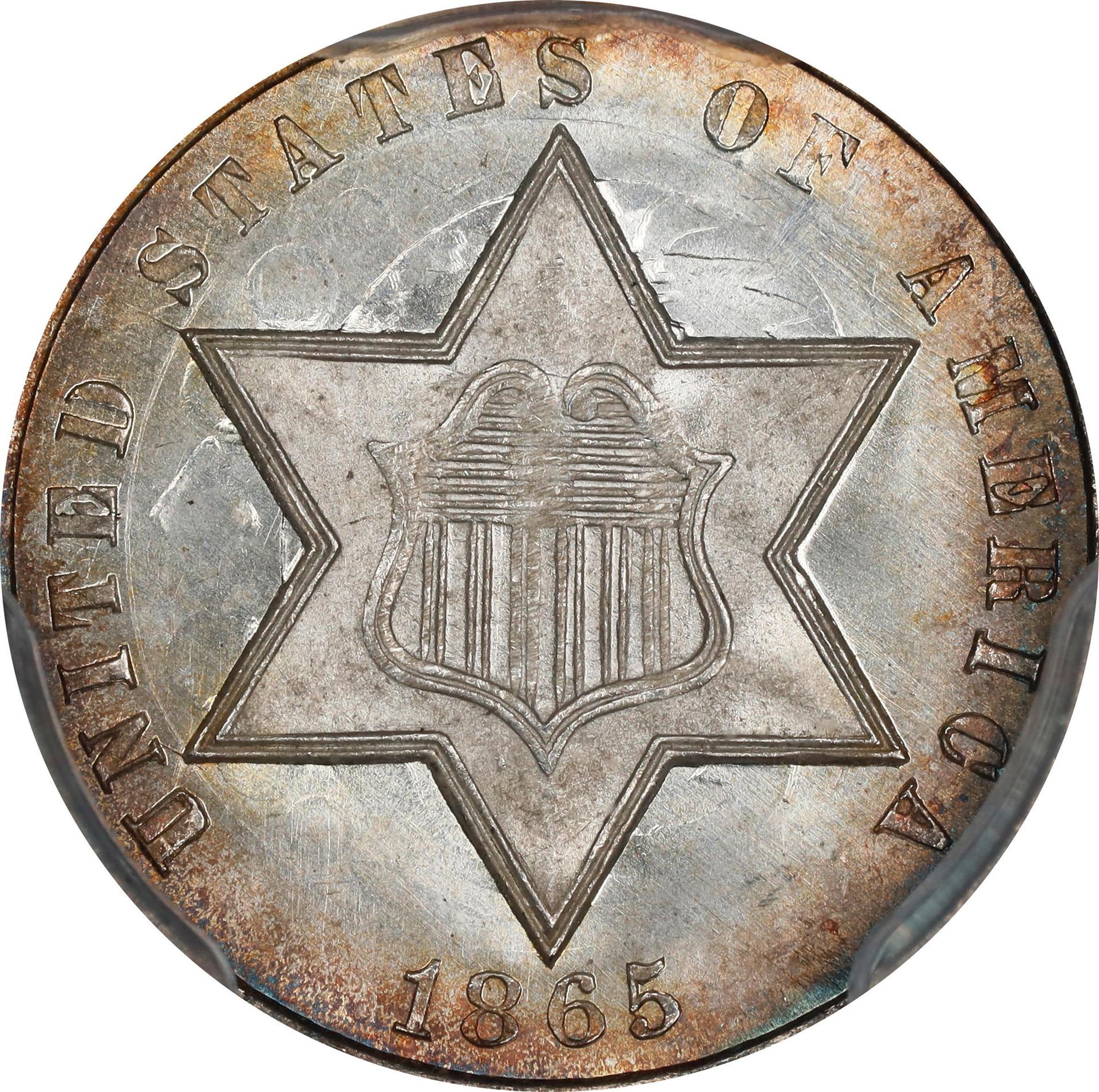 Although their initial popularity quickly waned, most of the early trimes saw extensive use in circulation. As a result, high-grade mint state specimens are extremely scarce, especially in levels of MS-66 and above. Places to check for wear include the points of the star and the high parts of the Roman numeral III. Weak striking is common with this issue and should not be mistaken for wear.