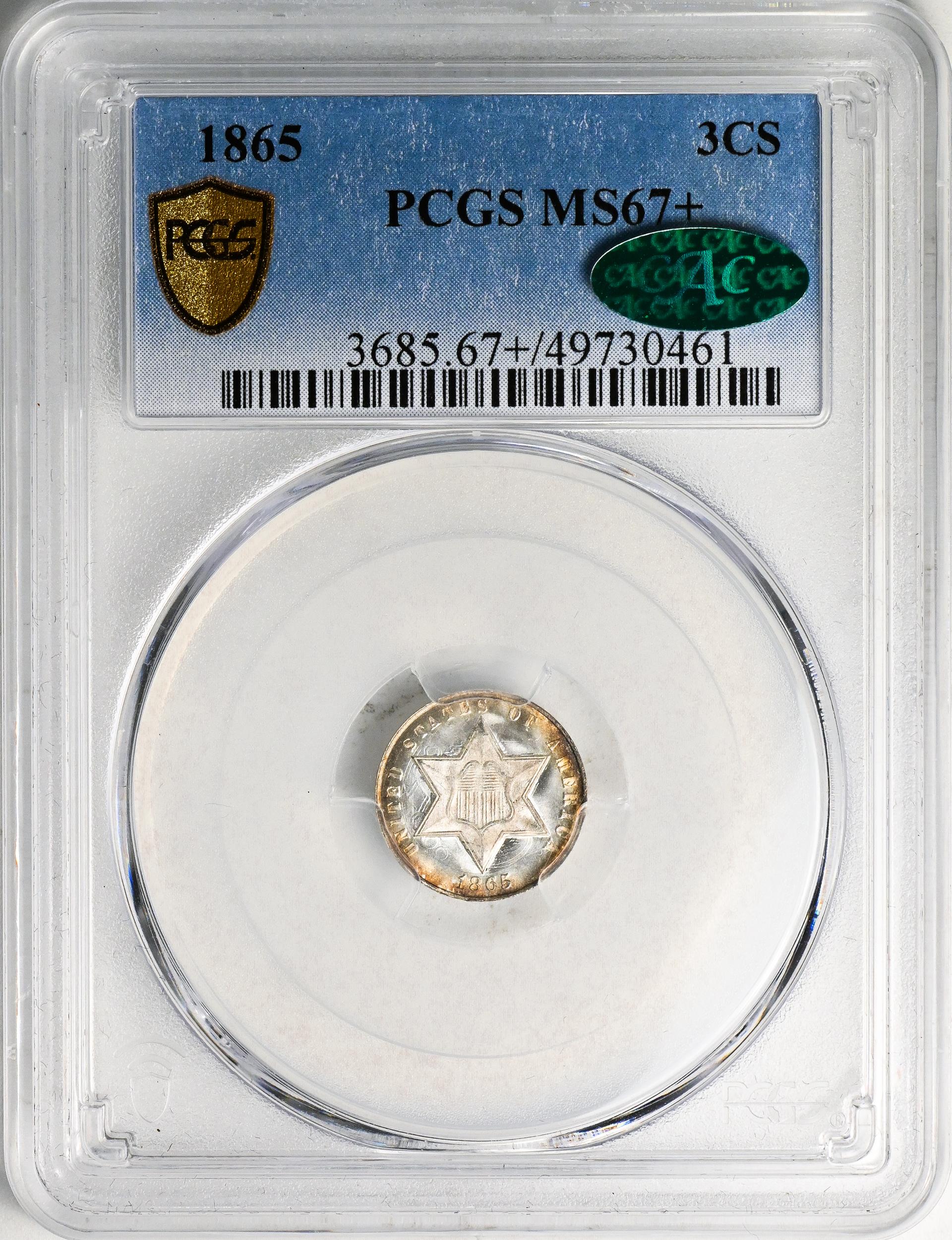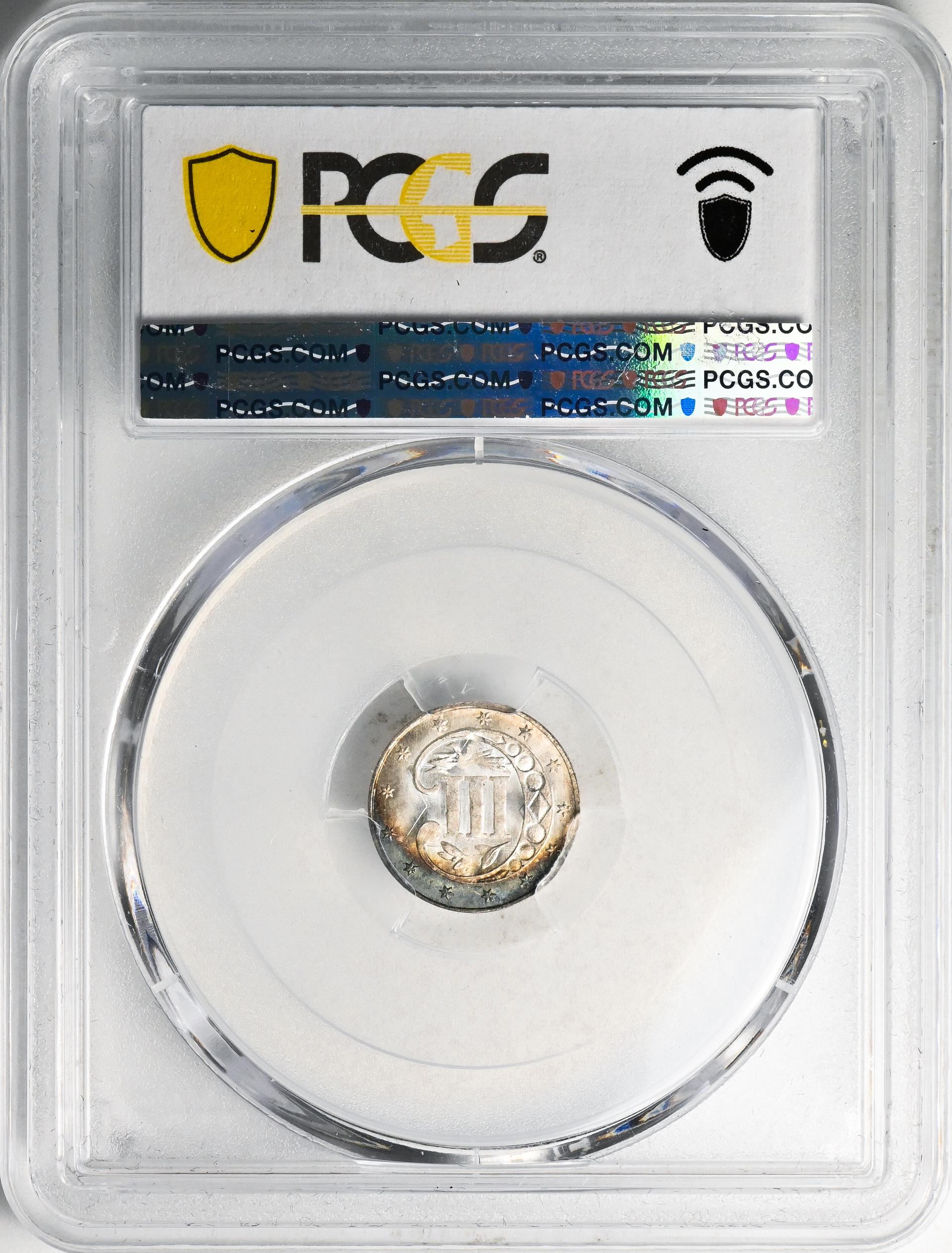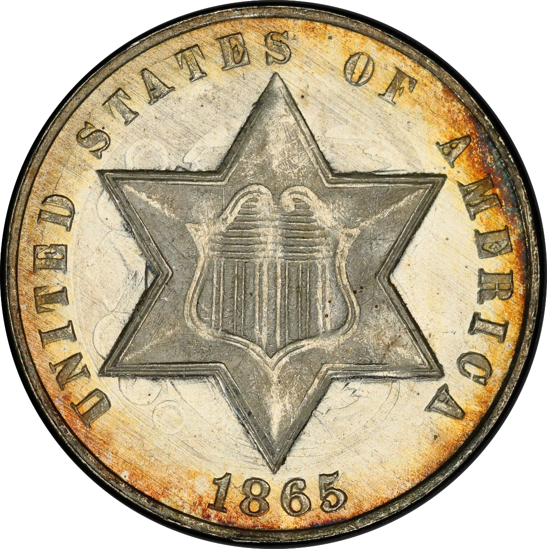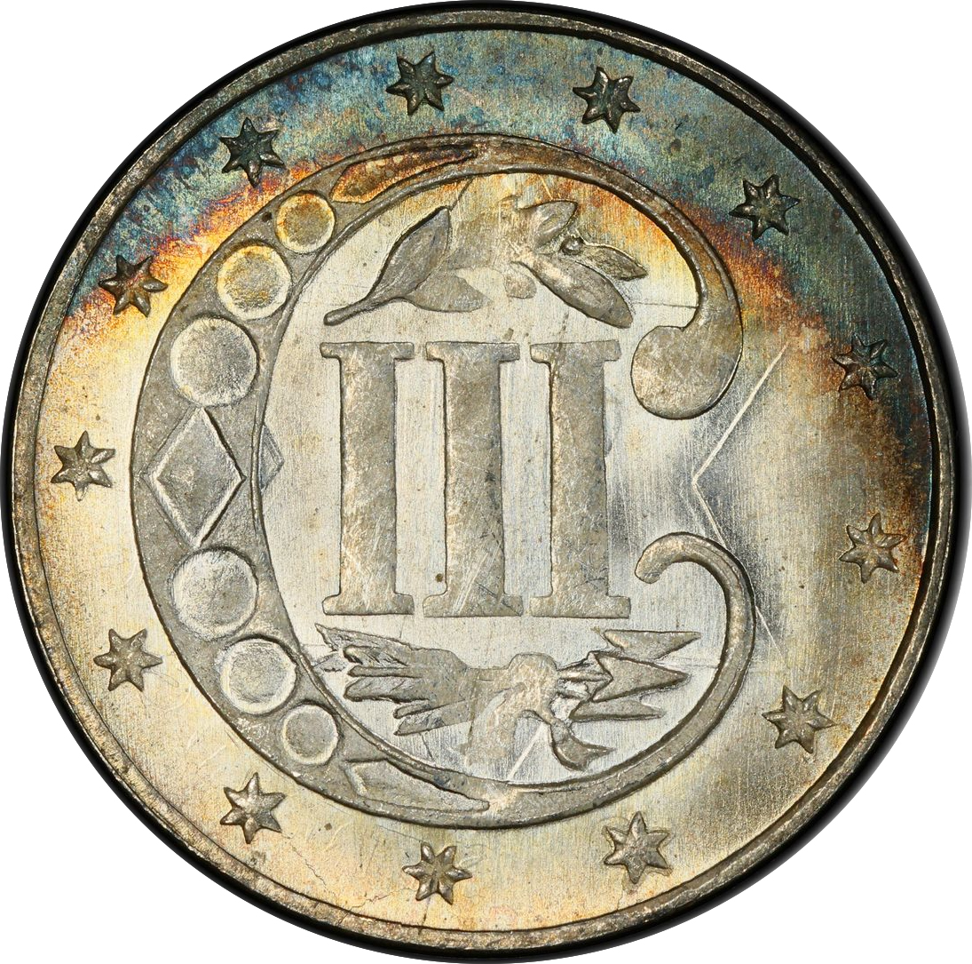 Although their initial popularity quickly waned, most of the early trimes saw extensive use in circulation. As a result, high-grade mint state specimens are extremely scarce, especially in levels of MS-66 and above. Places to check for wear include the points of the star and the high parts of the Roman numeral III. Weak striking is common with this issue and should not be mistaken for wear.