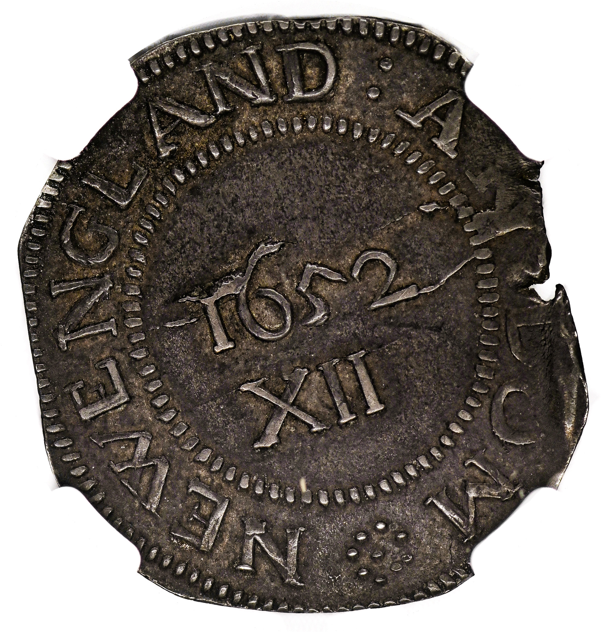 The mint’s first silver shillings bore simply the letters NE (for New England) on the obverse and the values XII (12 in Roman numerals), VI (6) or III (3) on the reverse. Easily counterfeited or clipped, these coins were quickly replaced by ones featuring a tree on their obverse. Three styles of trees were used over the thirty years of production: a willow (1652-60), an oak (1660-67) and, most familiar of all, a pine (1667-82).