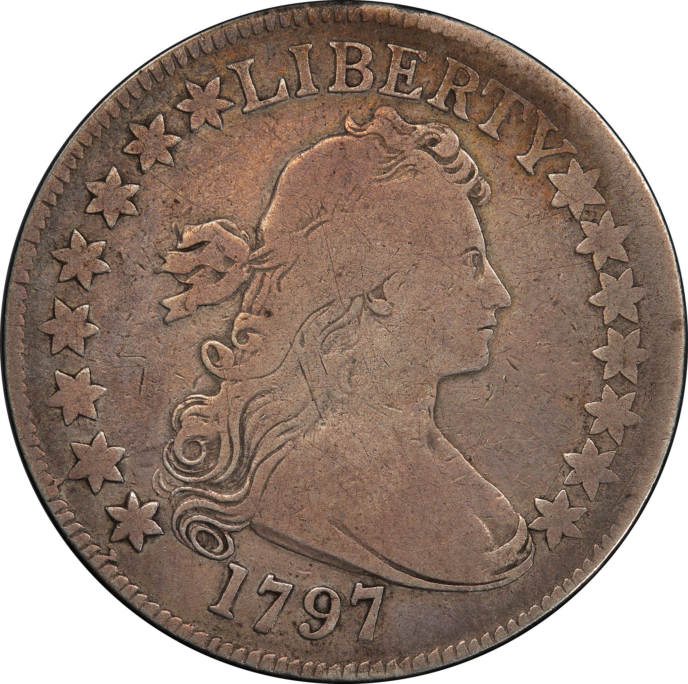 Like her more youthful predecessor, this matronly Liberty had stars alongside her. Curiously, though, the number of stars increased from fifteen to sixteen partway through the 1796 production year, after Tennessee was admitted to the Union as the 16th state. It then dropped back to fifteen in 1797, evidence that dies were mostly prepared in advance and then dated only as they were needed for coining.
