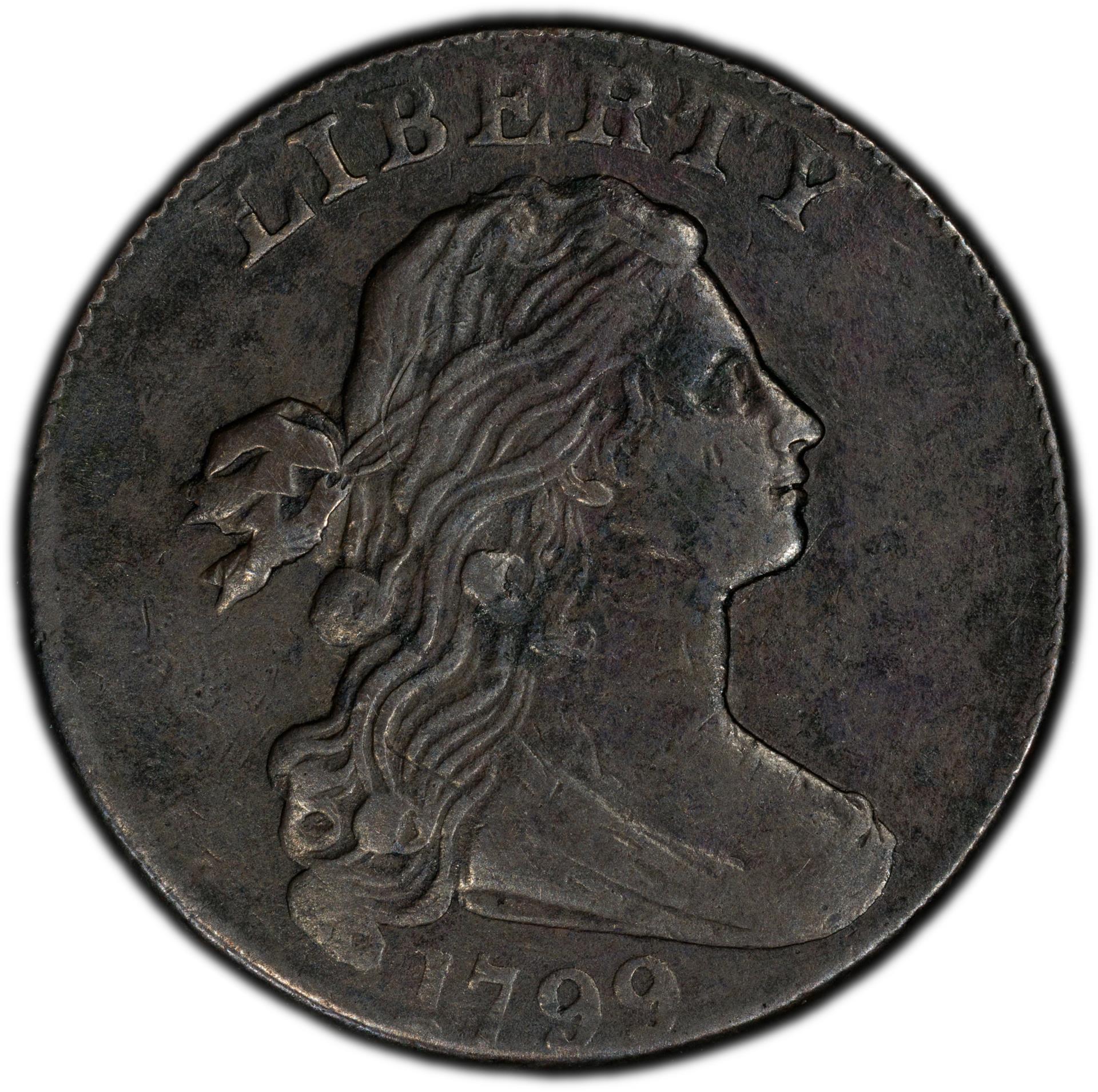 Over 16 million Draped Bust large cents were made between 1796 and 1807. Although replete with many scarce varieties, the series has one particularly rare date, 1799. First popularized by early 19th century collector Joseph Mickley’s search for his birth year coin, the 1799 issue has achieved fame among large cent devotees. Although the mintage was relatively high, they are elusive in all grades. One story relating to their short supply opines that thousands of 1799 dated cents destined for tribal chiefs in exchange for slaves were lost at sea while being shipped to Africa by a Salem, Massachusetts company.