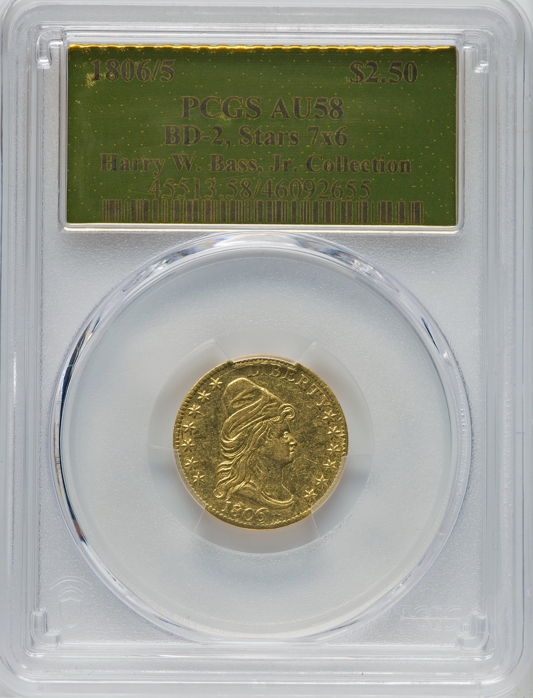 1806/5 DRAPED BUST $2.5, 7X6 STARS AU58
