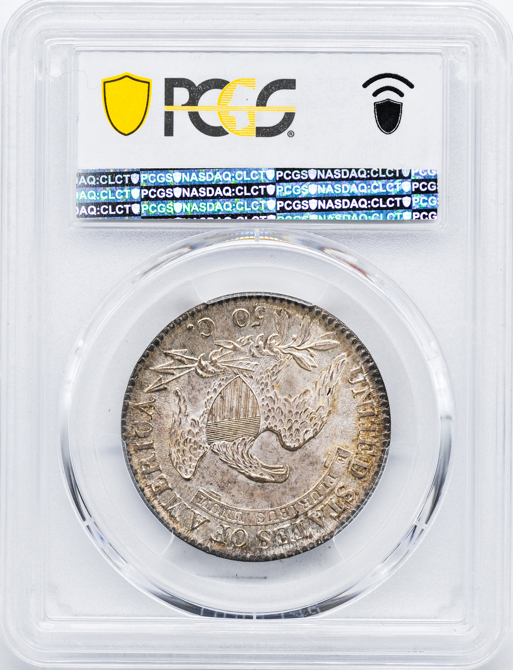 Capped Bust/reeded edge half dollars are readily available in mint state grades, but relatively few have survived in levels of MS-65 and above. Although generally collected in the higher grades as type coins, some date and variety specialists assemble sets in circulated condition, often as part of the larger Capped Bust series. Points to check for wear on the obverse include the drapery at the front of the bust, the shoulder clasp and the cap and hair above the eye. On the reverse, wear will first show on the eagle’s wing-edges and talons.
