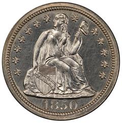 Collectors appreciate this coin for the stunning visual appeal created by the blank fields highlighting the central design, giving the coin a “cameo” appearance. More popularly collected by design type, few collectors try to collect the entire fifty-four year Seated Liberty dime series because of the large number of coins needed and the difficulty in locating and affording the many rare dates and varieties. Type collectors seek the No Stars variety along with the four other major types: 1838-60 With Stars, 1853-55 Arrows, 1860-91 Legend Obverse and 1873-74 Arrows. These five design types are affordable and relatively easy to find in any grade through MS-64.