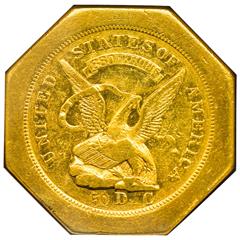 NO "50". VERY CHOICE LUSTROUS AU SLUG. VIRTUALLY BLEMISH SURFACES.