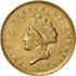 Type 1 gold dollars are scarce but available in grades up through Mint State-64, but they’re scarce in MS-65 and very rare above that level. The highest relief points on the Type 1 gold dollar are the hair near the coronet and the tips of the leaves on the wreath. These are where traces of wear first appear and thus are major keys in determining grade. Although collected by date and mintmark in circulated grades, the rarity of high grade pieces generally limits collectors to just one example for their type sets.