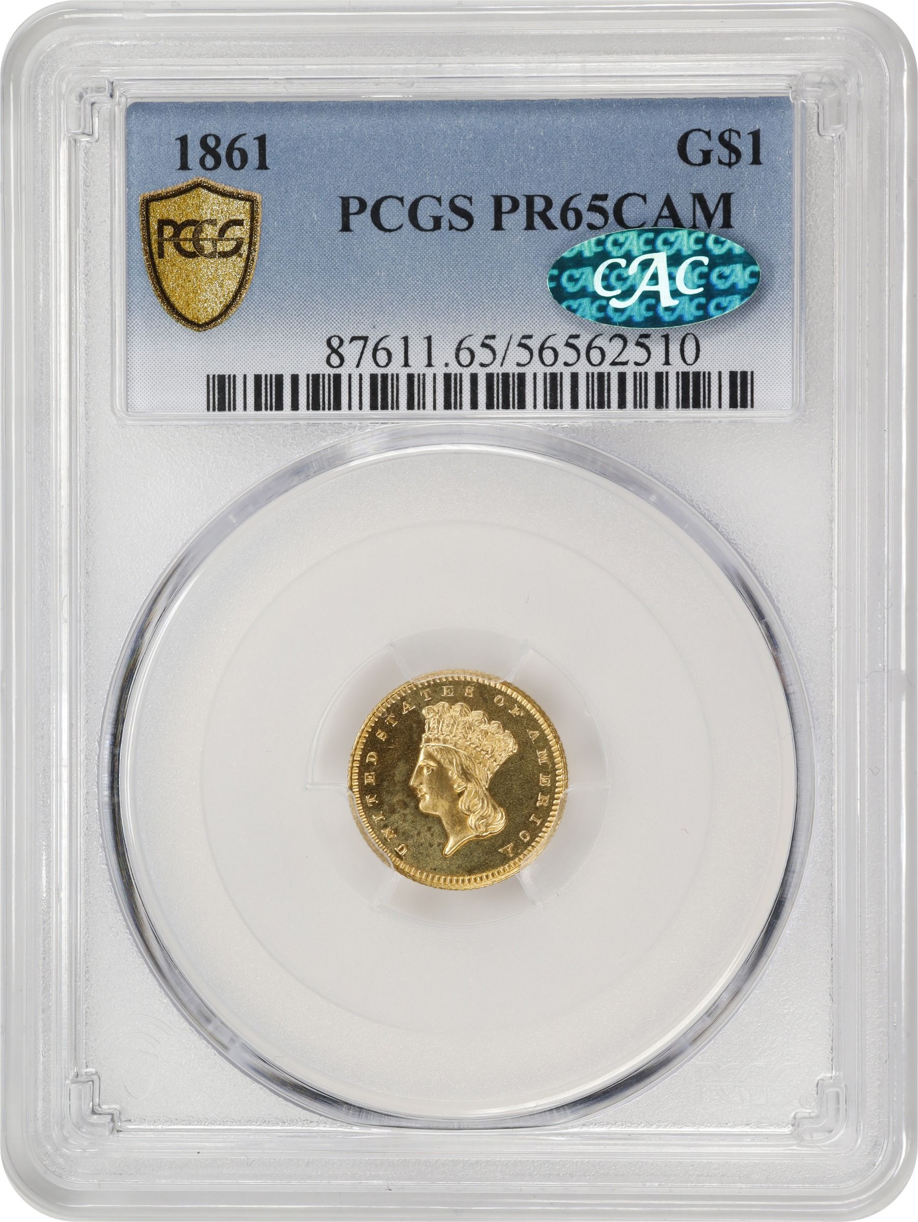 Type 1 gold dollars are scarce but available in grades up through Mint State-64, but they’re scarce in MS-65 and very rare above that level. The highest relief points on the Type 1 gold dollar are the hair near the coronet and the tips of the leaves on the wreath. These are where traces of wear first appear and thus are major keys in determining grade. Although collected by date and mintmark in circulated grades, the rarity of high grade pieces generally limits collectors to just one example for their type sets.