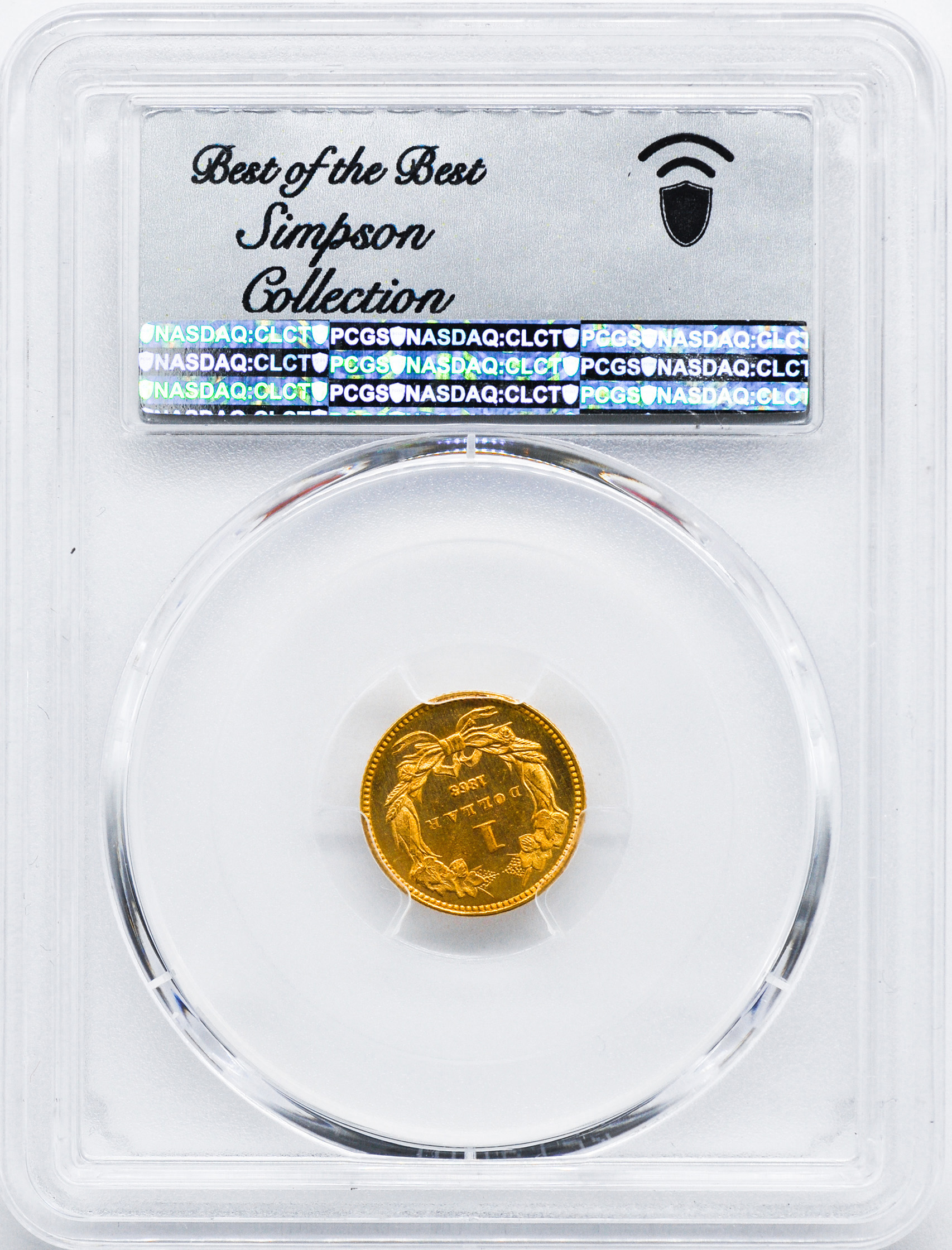 One of the few complete collections of gold dollars formed was that of the late Louis Eliasberg, Sr. Acquiring the collection of the Clapp Family intact, he added whatever pieces were missing or needed upgrading. This fabulous collection was sold at auction in 1982, and the famed Eliasberg pedigree is still highly sought by collectors.