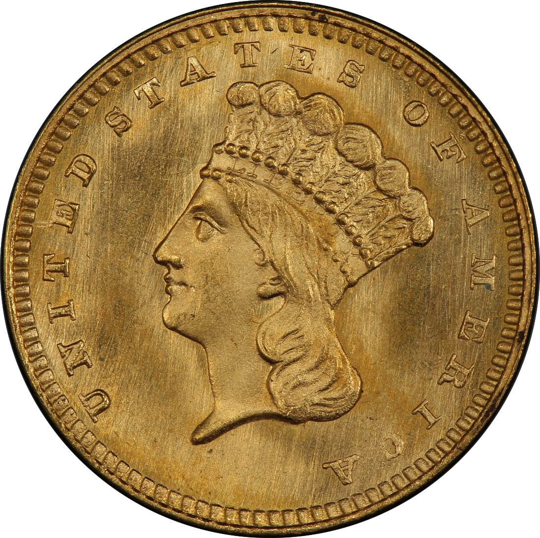 Type 3 gold dollars are far more plentiful in choice mint condition than the two earlier types, and the key points of reference for detecting signs of wear—the cheek and the bow-knot on the wreath—are more likely to be pristine. Gem examples of 1862, 1874 and many dates in the ‘80s are generally available.
