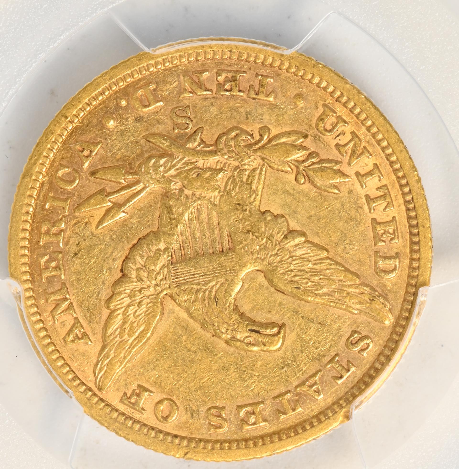 Struck in Philadelphia (no mintmark) every year of the series, No Motto eagles were also minted in New Orleans (O) from 1841 through 1860, and in San Francisco (S) from 1854 through 1866. About 5.3 million business strikes and 400 proofs were made, but unfortunately, few were preserved. Mintages were small and most survivors didn’t make it past the recall and meltings of the 1930s. As a result, it is difficult to find high grade specimens of any date in the series. There are no “common-dates” in uncirculated condition—every issue is rare, and only a handful even approach the grade of MS-65. Superb pieces occasionally appear, but almost exclusively in sales of the largest and most famous collections.