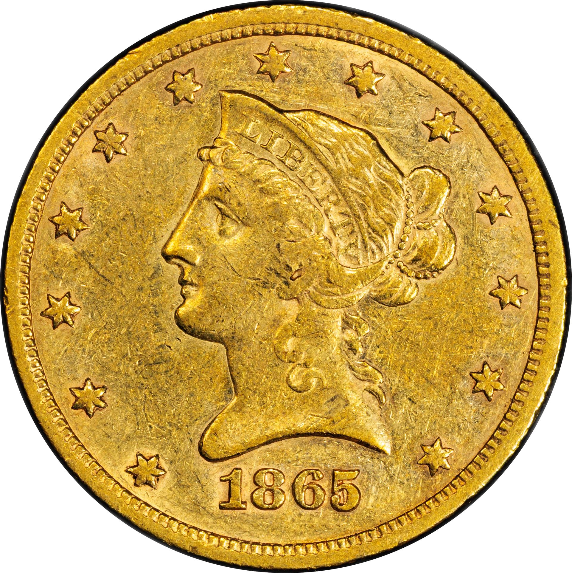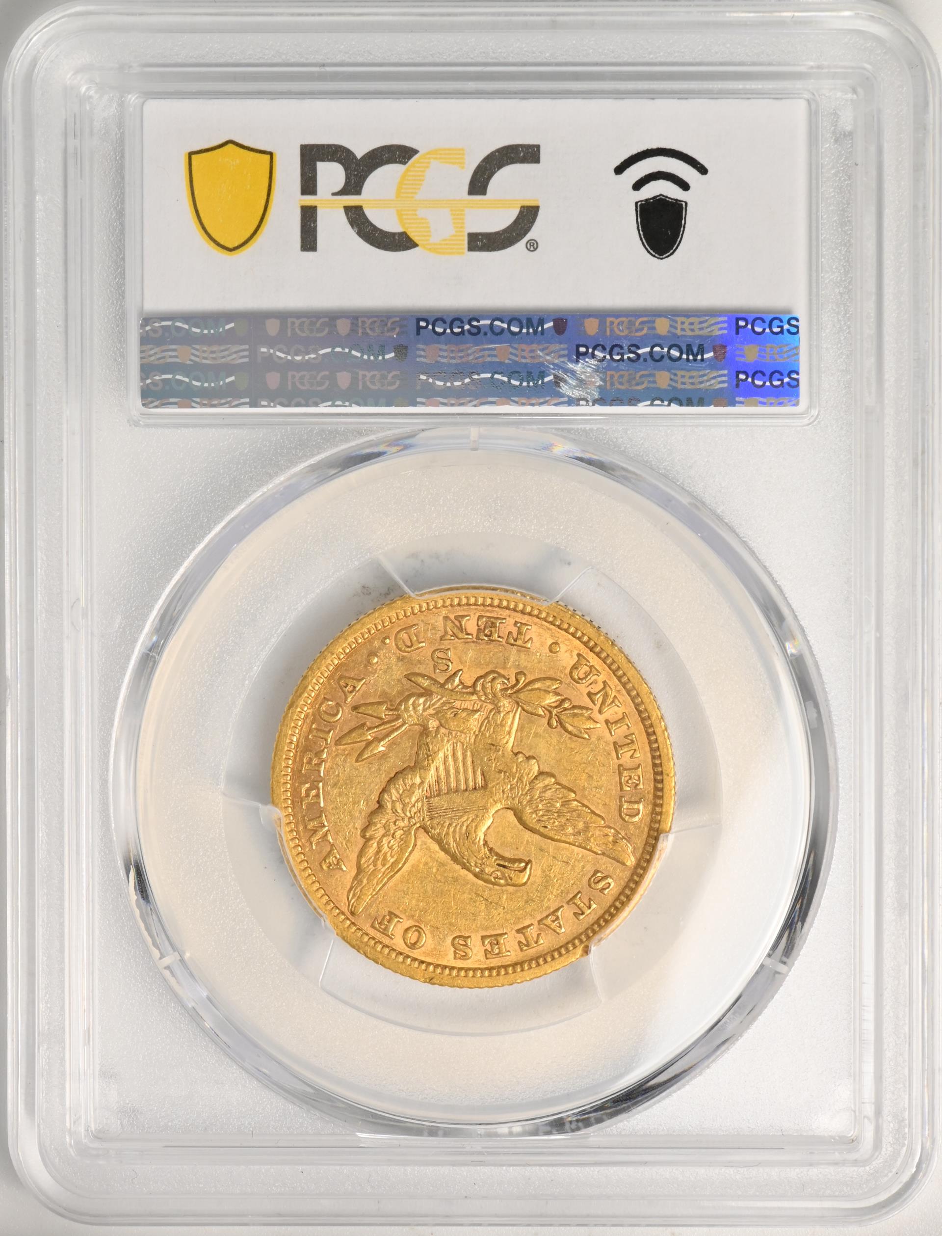 The eagle issued since 1838 was the Christian Gobrecht designed Coronet Head, featuring a neoclassic head of Liberty adorned with a coronet inscribed LIBERTY. 13 stars surround the bust, with the date below. The reverse depicts an eagle holding arrows and an olive branch, encircled by the inscriptions UNITED STATES OF AMERICA and TEN D. Chief Engraver James Barton Longacre placed the new motto on a scroll over the eagle’s head. From 1866 through 1869, only Philadelphia (no mintmark) and the increasingly important San Francisco (S) branch struck this new design. Production began at Carson City, Nevada (CC), in 1870 and continued through 1893. New Orleans (O) coins appeared in 1879, and the new Denver (D) facility began mintage in 1906. Mintmarks are found on the reverse, below the eagle.