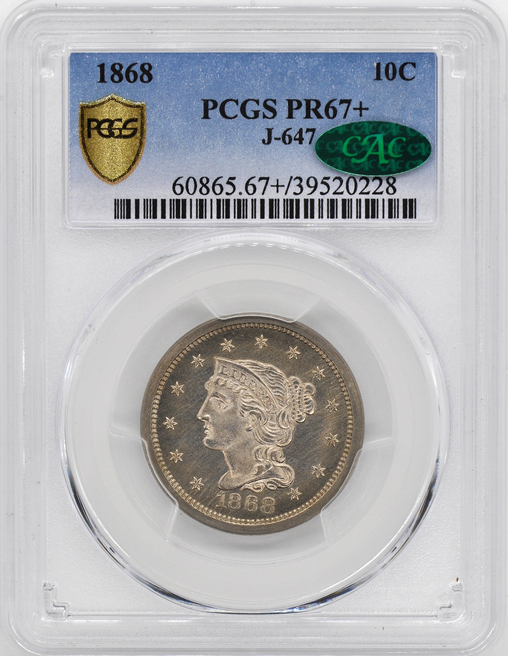 By 1861, as the dark cloud of the Civil War descended upon the nation, experiments with religious mottos accounted for many new proposals. After the motto IN GOD WE TRUST was adopted in 1864-66, designs for a new nickel five-cent piece took center stage. It was around this time that aluminum was first used in the Mint, and complete sets of the regular issues in that metal were made, reportedly for Mint Director Henry R. Linderman. It was on Linderman’s watch that restrikes of both regular issues and patterns really came into full swing. Unlike his predecessors, who sought only to embellish the Mint’s own collection, Linderman was not at all reluctant to have coins struck on his own behalf. One conduit through which these pieces left the Mint was Philadelphia pharmacist and numismatic “insider” R. Coulton Davis (1813-1888). Davis published the first catalog of U.S. pattern coins as a series in the American Journal of Numismatics, 1885-87. The late Walter Breen attributed Davis’ favored status to his willingness to supply key personnel with opium-based patent medicines then in widespread use.