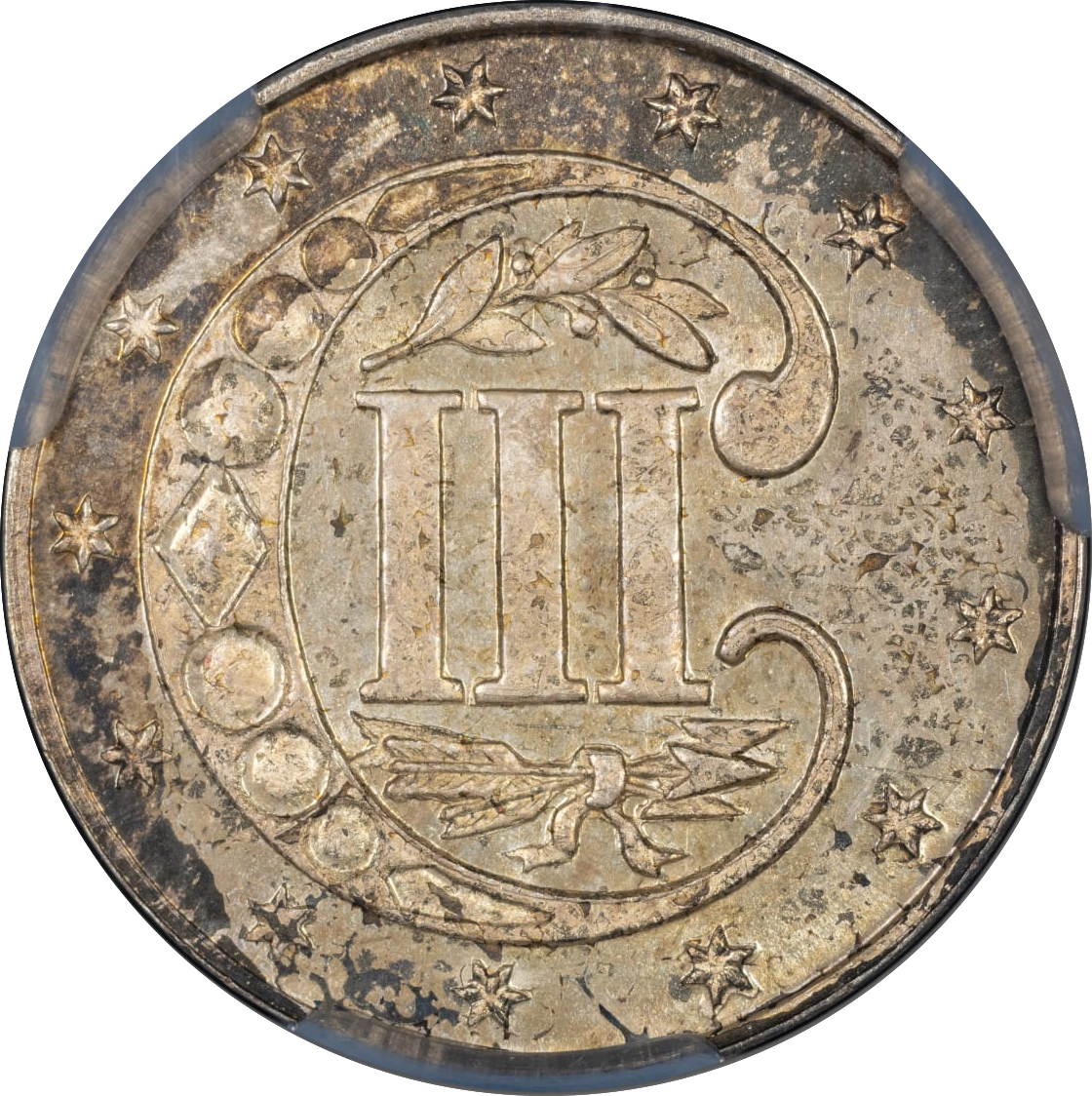 Although their initial popularity quickly waned, most of the early trimes saw extensive use in circulation. As a result, high-grade mint state specimens are extremely scarce, especially in levels of MS-66 and above. Places to check for wear include the points of the star and the high parts of the Roman numeral III. Weak striking is common with this issue and should not be mistaken for wear.
