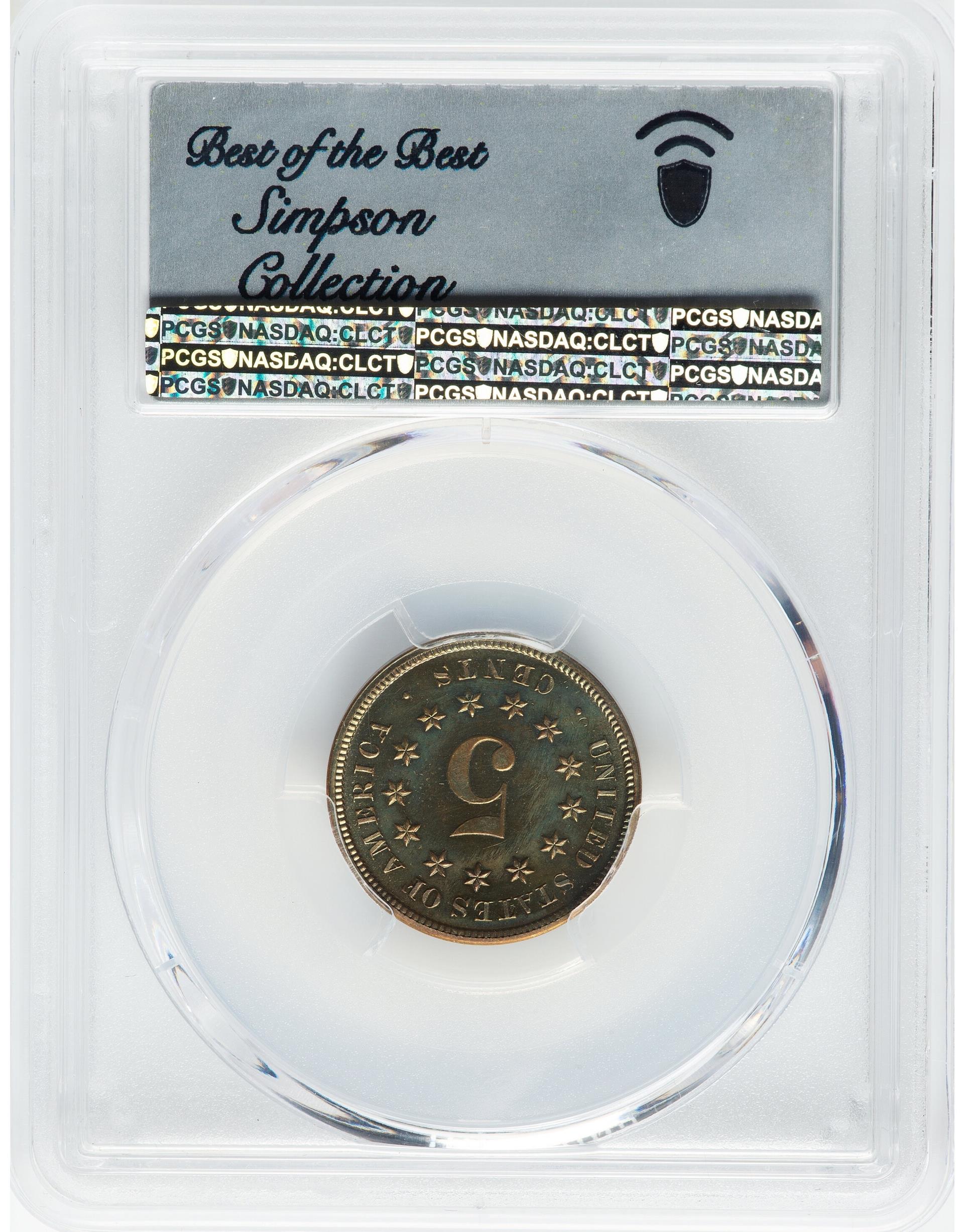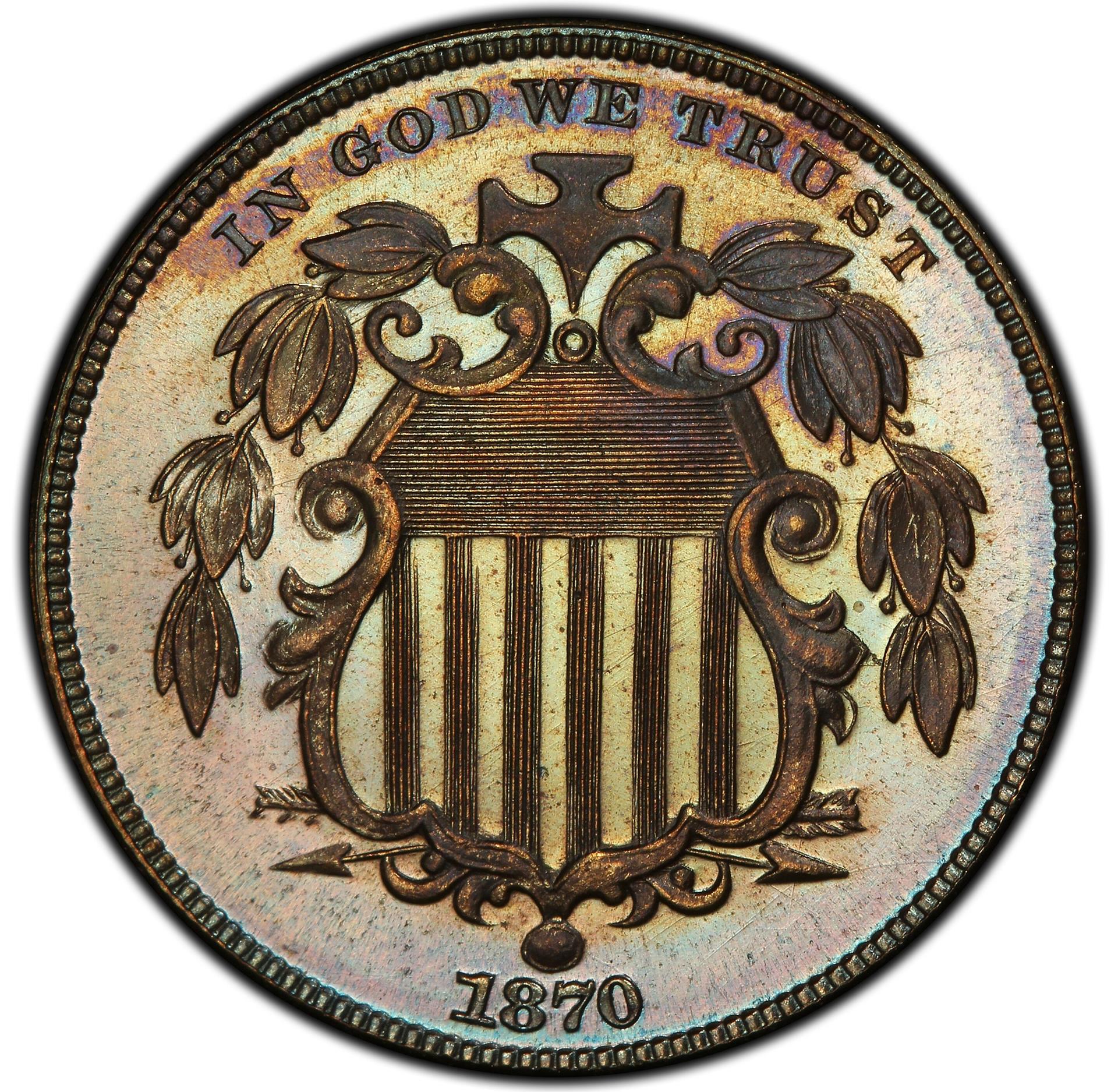 By 1861, as the dark cloud of the Civil War descended upon the nation, experiments with religious mottos accounted for many new proposals. After the motto IN GOD WE TRUST was adopted in 1864-66, designs for a new nickel five-cent piece took center stage. It was around this time that aluminum was first used in the Mint, and complete sets of the regular issues in that metal were made, reportedly for Mint Director Henry R. Linderman. It was on Linderman’s watch that restrikes of both regular issues and patterns really came into full swing. Unlike his predecessors, who sought only to embellish the Mint’s own collection, Linderman was not at all reluctant to have coins struck on his own behalf. One conduit through which these pieces left the Mint was Philadelphia pharmacist and numismatic “insider” R. Coulton Davis (1813-1888). Davis published the first catalog of U.S. pattern coins as a series in the American Journal of Numismatics, 1885-87. The late Walter Breen attributed Davis’ favored status to his willingness to supply key personnel with opium-based patent medicines then in widespread use.
