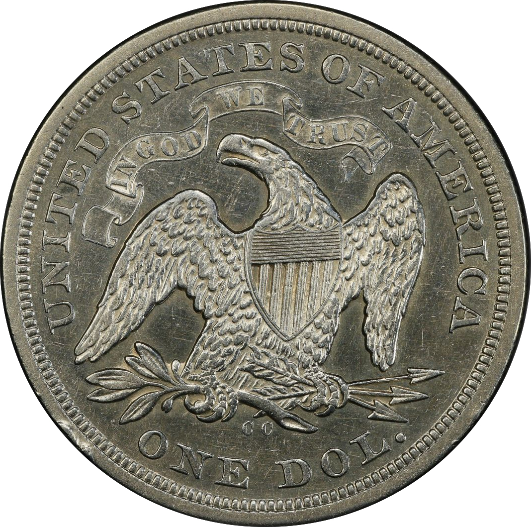 The Seated Liberty dollar of 1866, identical to previous issues except for the addition of the motto, was based on the original design by Christian Gobrecht, the former Chief Engraver of the Mint. First used on regular issue coins with the 1837 dime, it was applied to the dollar in 1840.