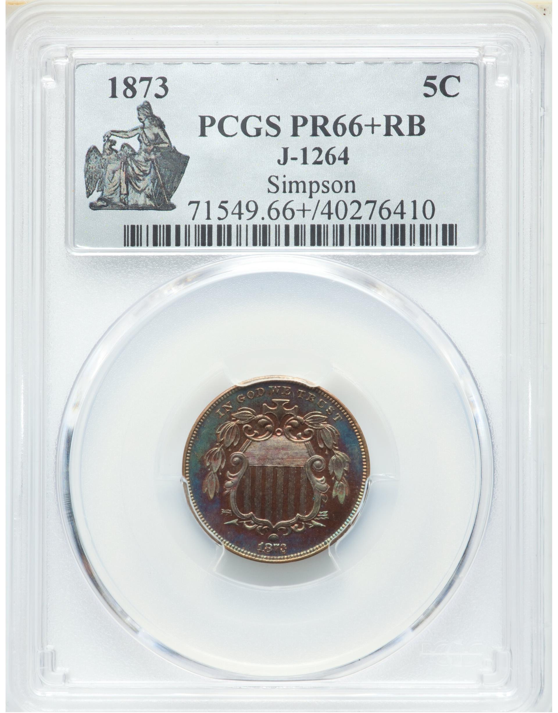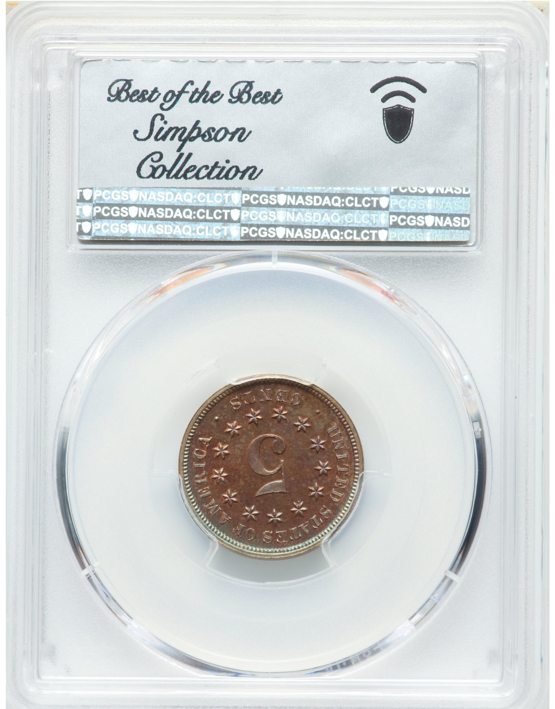 By 1861, as the dark cloud of the Civil War descended upon the nation, experiments with religious mottos accounted for many new proposals. After the motto IN GOD WE TRUST was adopted in 1864-66, designs for a new nickel five-cent piece took center stage. It was around this time that aluminum was first used in the Mint, and complete sets of the regular issues in that metal were made, reportedly for Mint Director Henry R. Linderman. It was on Linderman’s watch that restrikes of both regular issues and patterns really came into full swing. Unlike his predecessors, who sought only to embellish the Mint’s own collection, Linderman was not at all reluctant to have coins struck on his own behalf. One conduit through which these pieces left the Mint was Philadelphia pharmacist and numismatic “insider” R. Coulton Davis (1813-1888). Davis published the first catalog of U.S. pattern coins as a series in the American Journal of Numismatics, 1885-87. The late Walter Breen attributed Davis’ favored status to his willingness to supply key personnel with opium-based patent medicines then in widespread use.