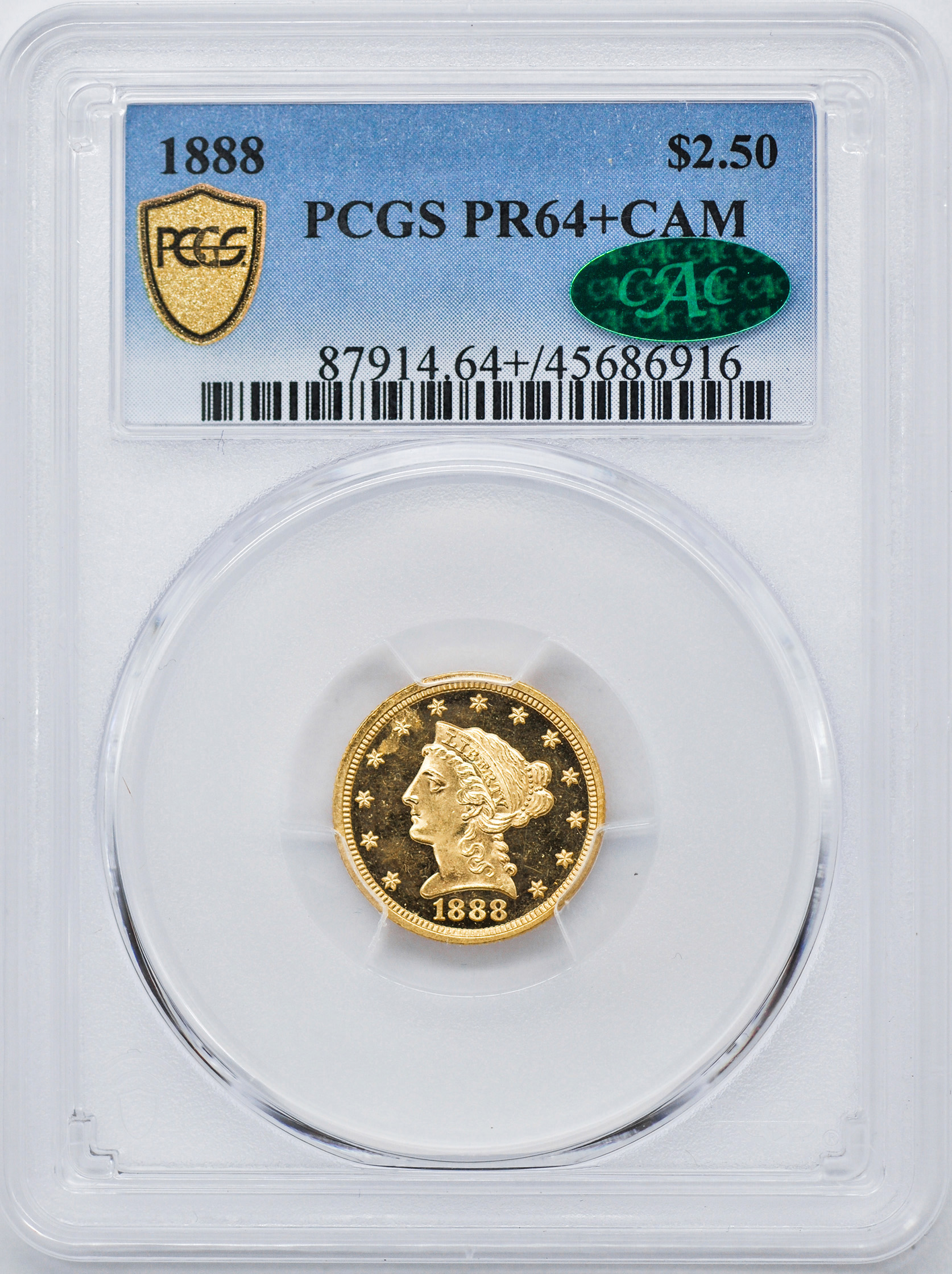 The design as finally adopted featured a large head of Liberty facing left, wearing a wide coronet inscribed with the word LIBERTY. Her hair is pulled back in a bun and held in place by a string of pearls. Thirteen stars are placed around the periphery, representing the original colonies, with the date below. The eagle on the reverse was essentially the same one that had been on quarter eagles since 1808. Originally designed by John Reich, the 1840-1907 version was modified by Gobrecht. The heraldic eagle has its wings spread from rim to rim with the union shield covering its breast. An olive branch representing the country’s peaceful intentions is in the eagle’s right claw, with three arrows emphasizing military preparedness in the left. The legend UNITED STATES OF AMERICA surrounds the eagle, with the denomination 2 1/2 D. beneath the bird.