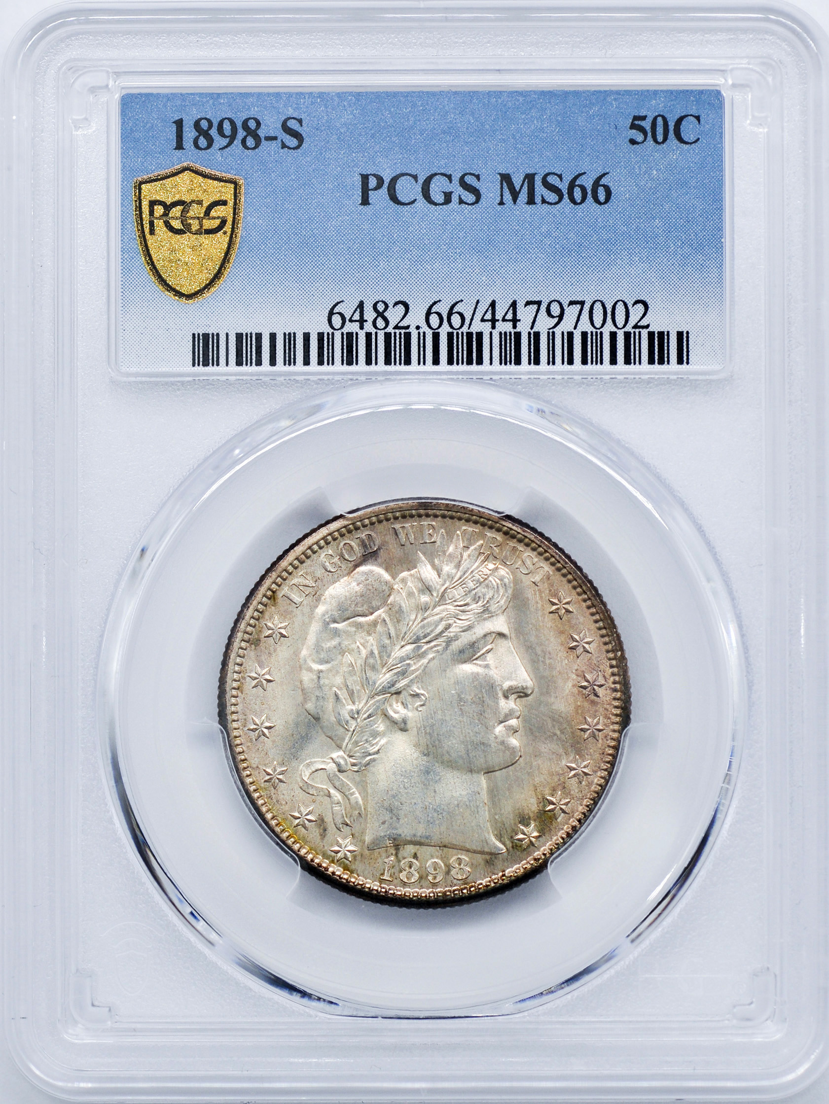 Barber half dollars were struck for a total of 24 years and in 73 different date-and-mint combinations. Collectors do assemble date-and-mint sets, especially in circulated grades, but in mint condition this coin is far more often collected by type. Meaningful numbers exist in mint state levels up to MS-65, but above that the population is thin. When grading this design, the points on the obverse that will first show wear are the cheek and the hair below LIBERTY; on the reverse, check the eagle’s head and the tips of the tail and wings.
