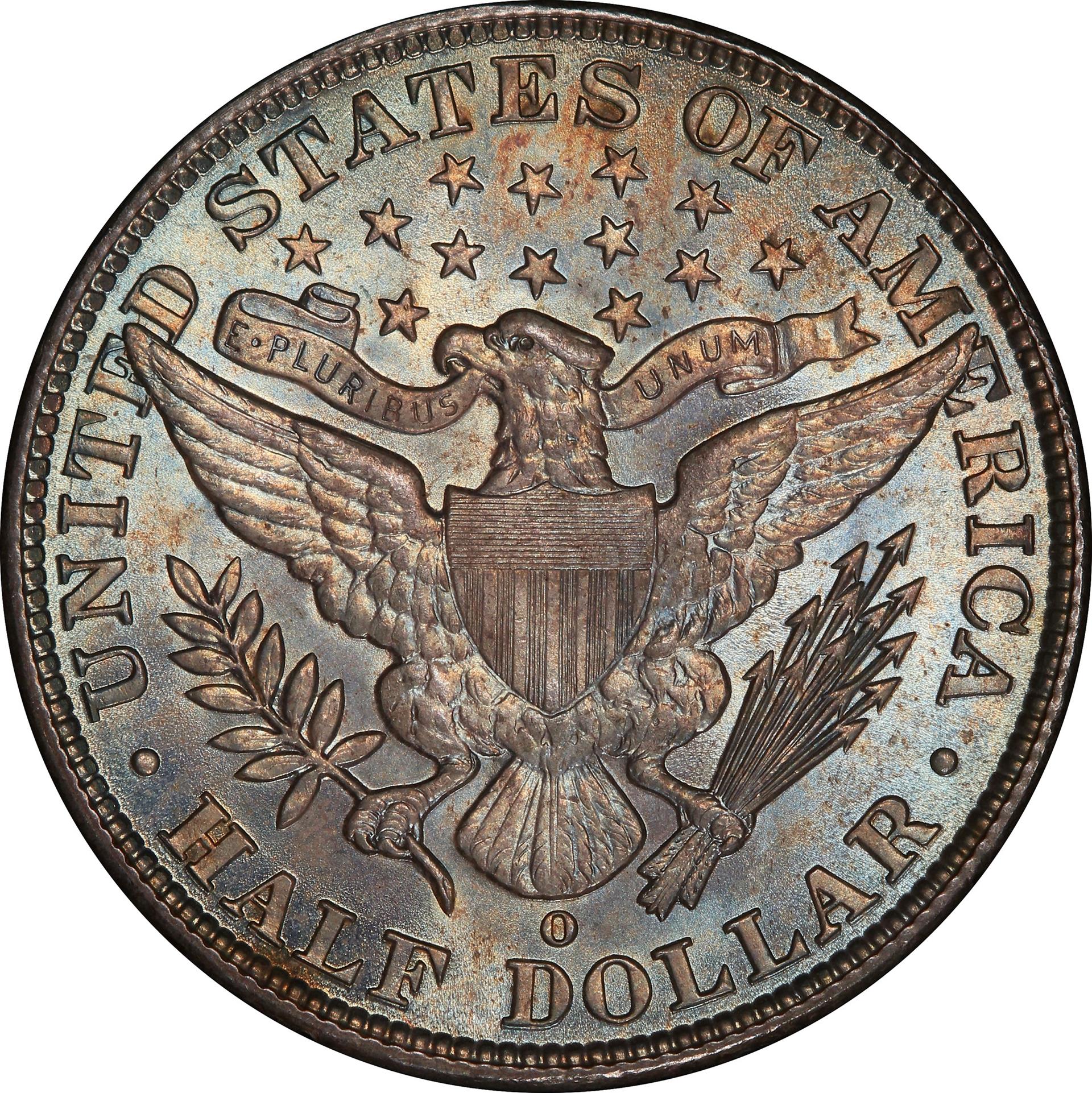 All three Barber silver coins debuted in 1892, and all three had steady, unspectacular careers in the nation’s coinage lineup. In the case of the Barber half dollar, annual production never exceeded six million pieces at any given mint; the highpoint came in 1899, when the main mint in Philadelphia made just a shade over 5.5 million. On the other hand, yearly output never dropped below 100,000 coins at any one mint. The low point occurred in 1914, when just 124,610 half dollars were struck at Philadelphia. Besides the main mint, Barber halves also were produced at the branch mints in New Orleans (O mintmark), San Francisco (S) and Denver (D), with the mintmark placed below the eagle’s tail. Scarce issues include 1892-O, 1892-S, 1893-S, 1896-S, 1901-S, 1904-S and the last three pieces from Philadelphia—1913, 1914 and 1915. There are no extreme rarities within the basic date and mint series, though the 1892-O half with Micro O mintmark (the result of using a quarter dollar puncheon) is known only to the tune of several dozen pieces.