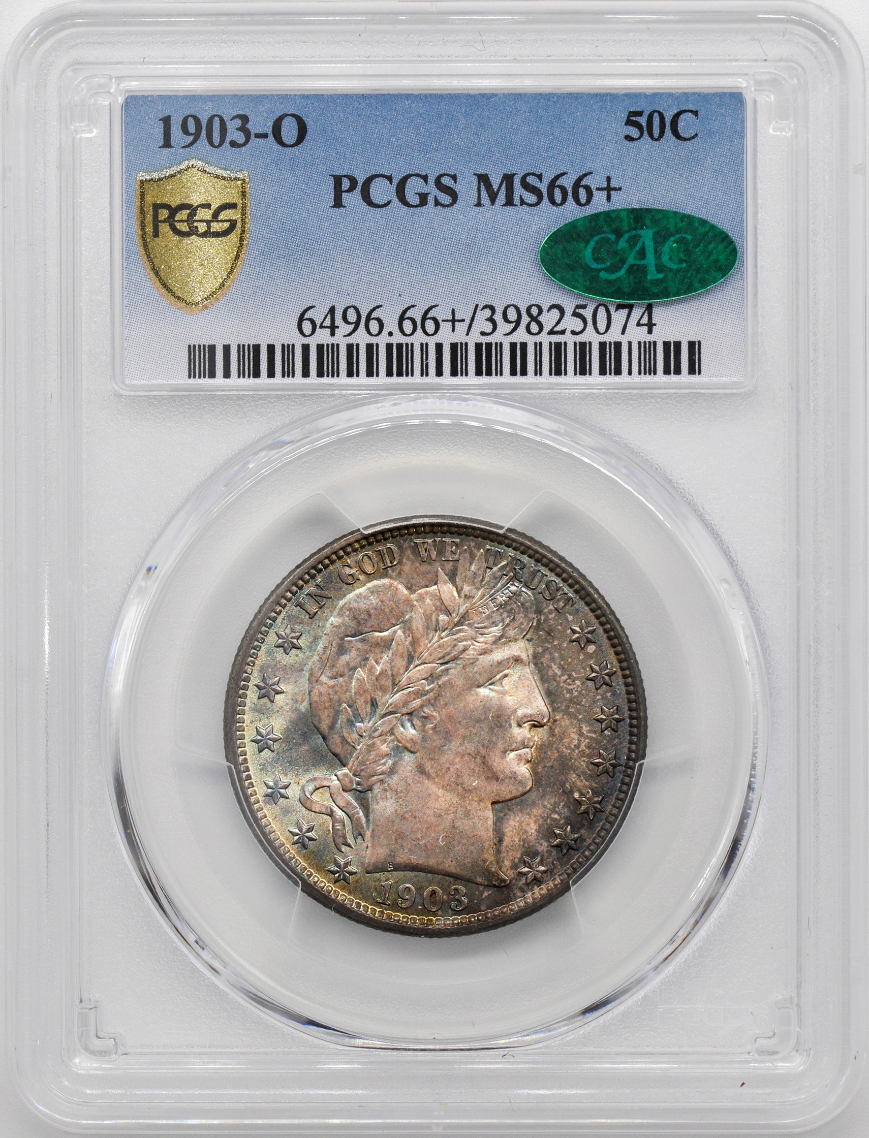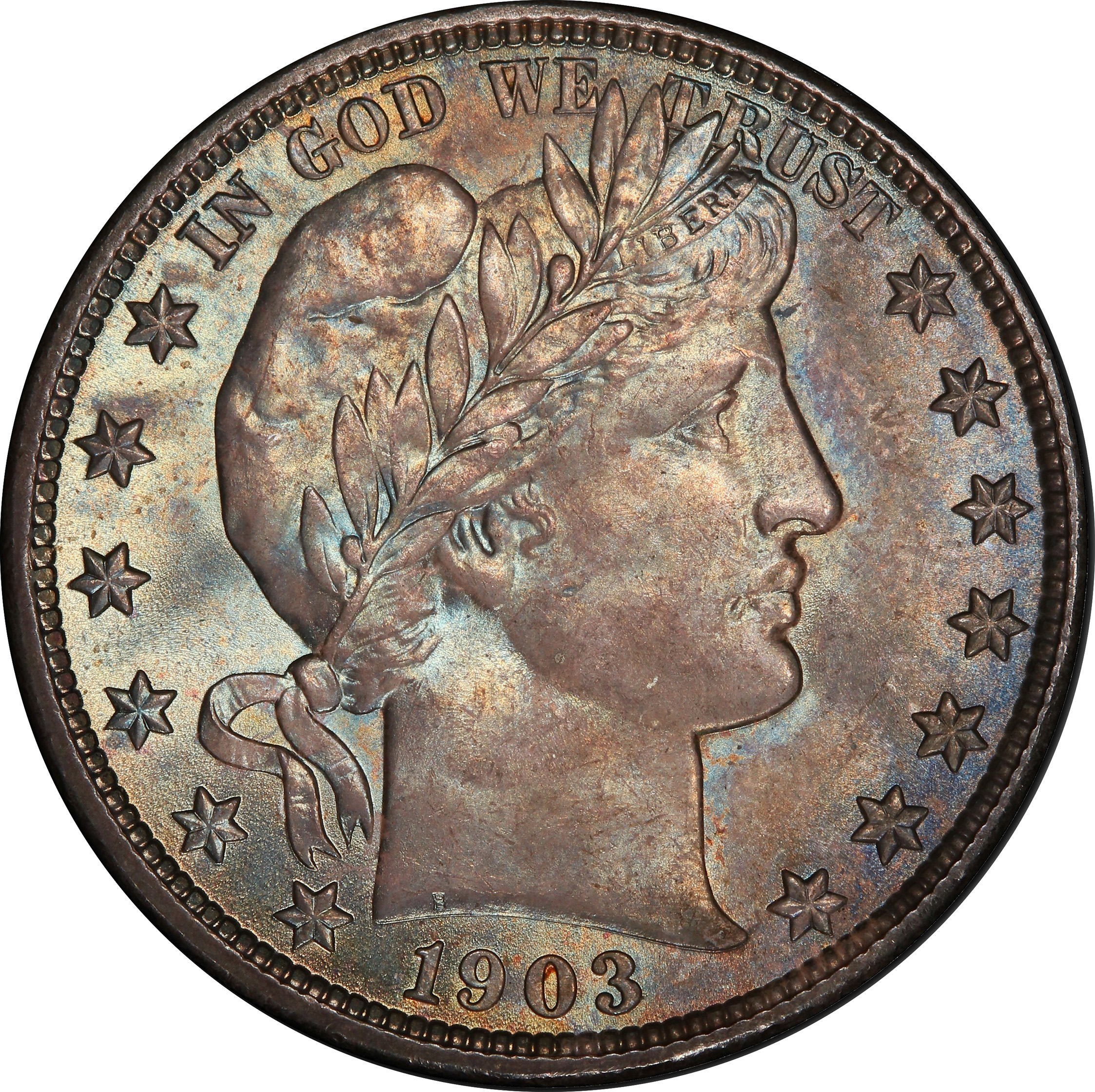 Barber half dollars were struck for a total of 24 years and in 73 different date-and-mint combinations. Collectors do assemble date-and-mint sets, especially in circulated grades, but in mint condition this coin is far more often collected by type. Meaningful numbers exist in mint state levels up to MS-65, but above that the population is thin. When grading this design, the points on the obverse that will first show wear are the cheek and the hair below LIBERTY; on the reverse, check the eagle’s head and the tips of the tail and wings.