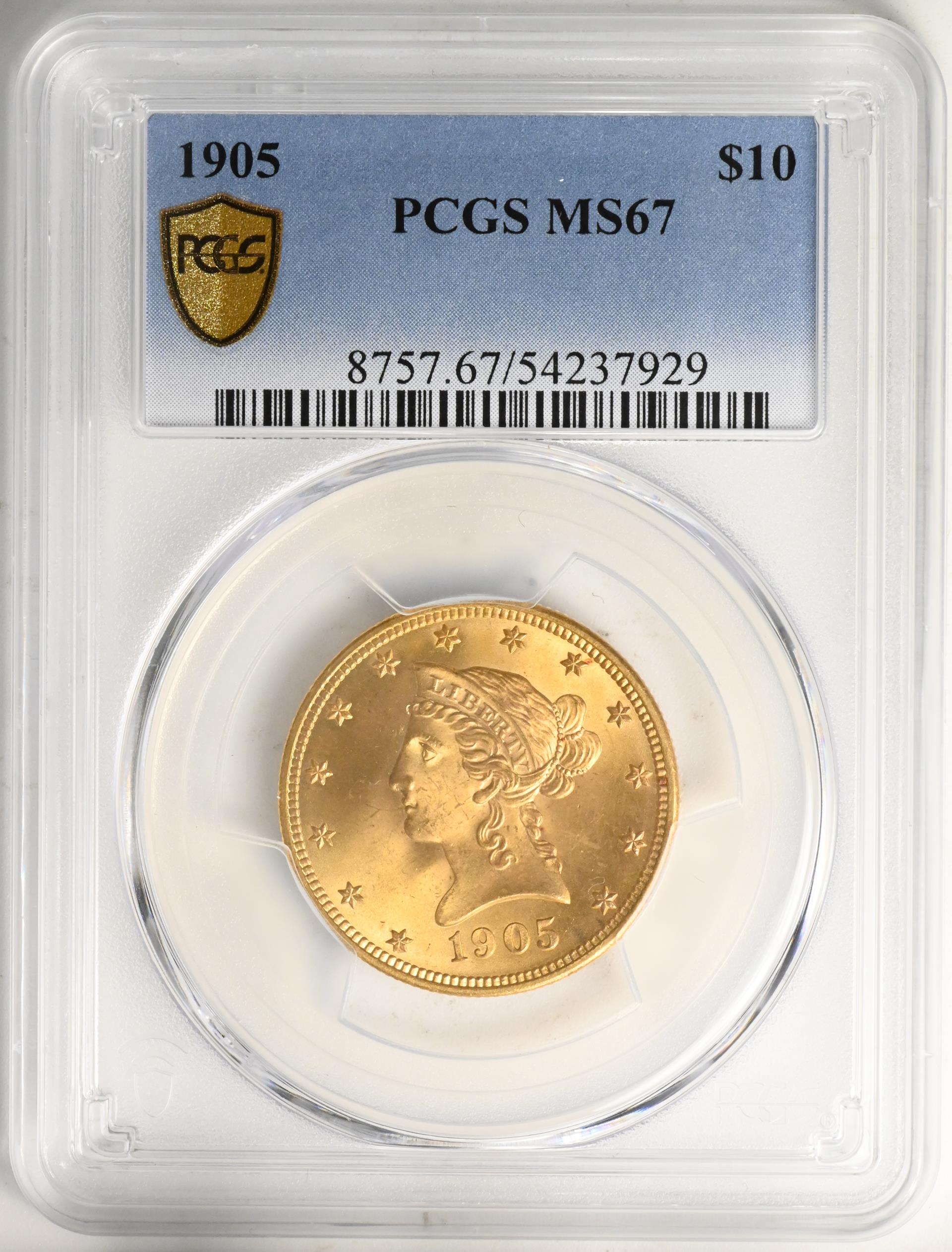 In considering the rarity of Coronet eagles with motto, it’s apparent that limited mintages went hand in hand with collector disinterest in pieces of such high face value. Relatively few coins were struck, but there were even fewer collectors interested in gold coins by date. Nor is low mintage the only guide to rarity. Some dates with relatively high figures are substantially scarcer today than their published totals might suggest. The 1888 Eagle is a case in point. Though 132,973 business strikes were produced, the coin is elusive in any grade and virtually unknown in mint state. With the exception of 1901-S, and to a lesser extent, the 1901, all issues of this series are RARE in gem uncirculated, limiting type collectors to only the occasional appearance of other dates. Infrequently, one-of-a-kind superb pieces surface in “name” collections, like the amazing 1899-O or 1901-O (among many others) from the Eliasberg estate.