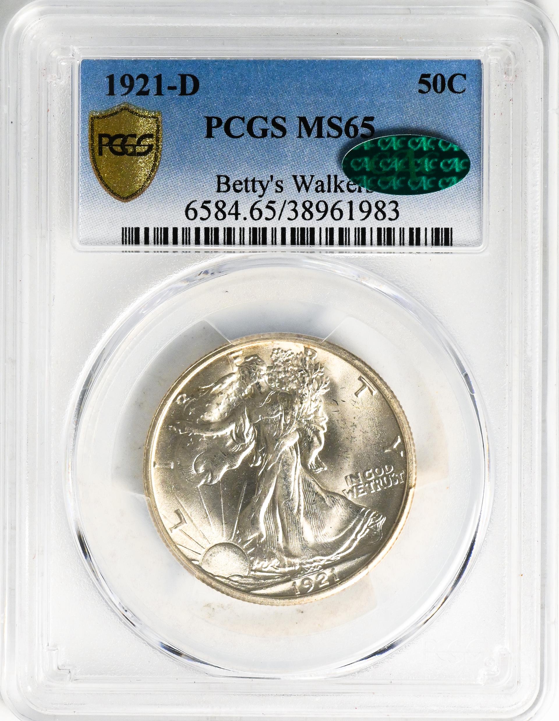 “Walkers,” as they’re frequently called, are large, precious metal coins with a much-admired design. As a result, they hold great appeal not only for traditional hobbyists but also for non-collectors. Many exist in grades up to Mint State-65. Even above that level, significant numbers exist for certain dates, particularly the later years. Most dates, however, come weakly struck, particularly on Liberty’s left hand and leg, head and skirt lines and on the eagle’s breast and leg feathers. Sharply struck coins often command substantial premiums. In an attempt to improve the striking characteristics of the design, some minor modifications were made by Chief Engraver George T. Morgan in 1918 and 1921 and again by Assistant Engraver John R. Sinnock in 1937 and 1938. None of the revisions seemed to help, as even later issues are often weak in the central parts of the design. Places to check for wear include Liberty’s head, breast, arms and left leg and the breast, leg and forward wing of the eagle.