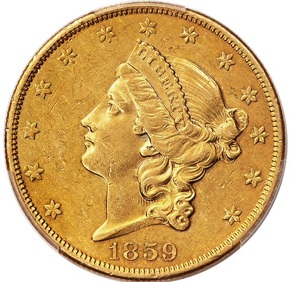 1861-O LIBERTY HEAD $20 AU55 PCGS